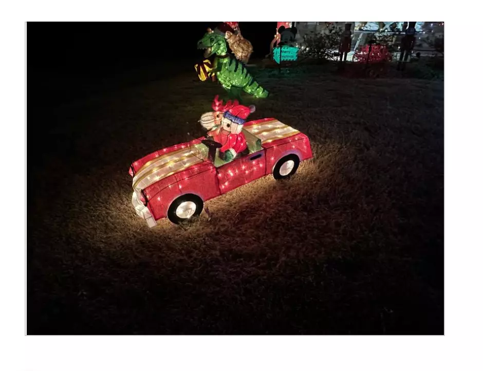 Santa in Race Car Outdoor Christmas Decoration Deck the lawn in festive cheer with Santa delivering gifts in his reindeer-less sleigh. Santa in car lawn decoration features 200 clear bulbs and an easy-to-assemble design with a sturdy metal frame. Fast and Free Shipping!