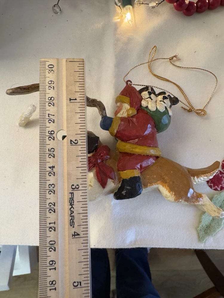 NEVER DISPLAYED NEW I opened the cello for photos The lead stick with doggie bone was in place in Santa's hand when I opened cello ALL IS EXCELLENT condition Gorgeous House of Hatten Santa on St. Bernard with puppies in toy sack Please see all photos SMOKE FREE HOME ALWAYS happy to combine for real shipping savings