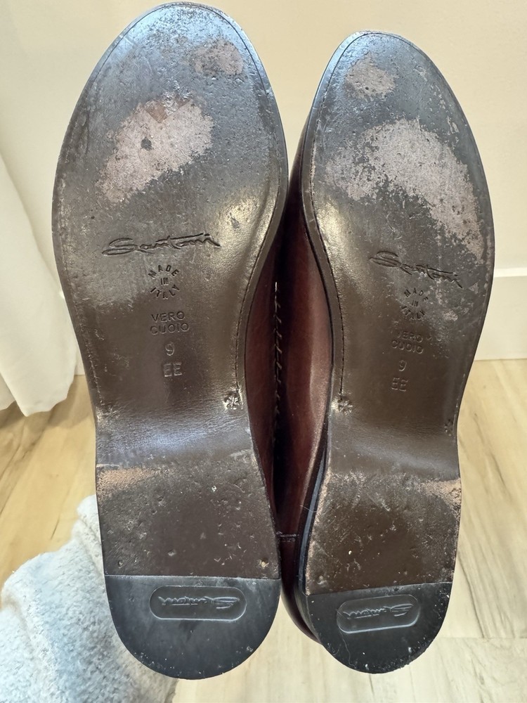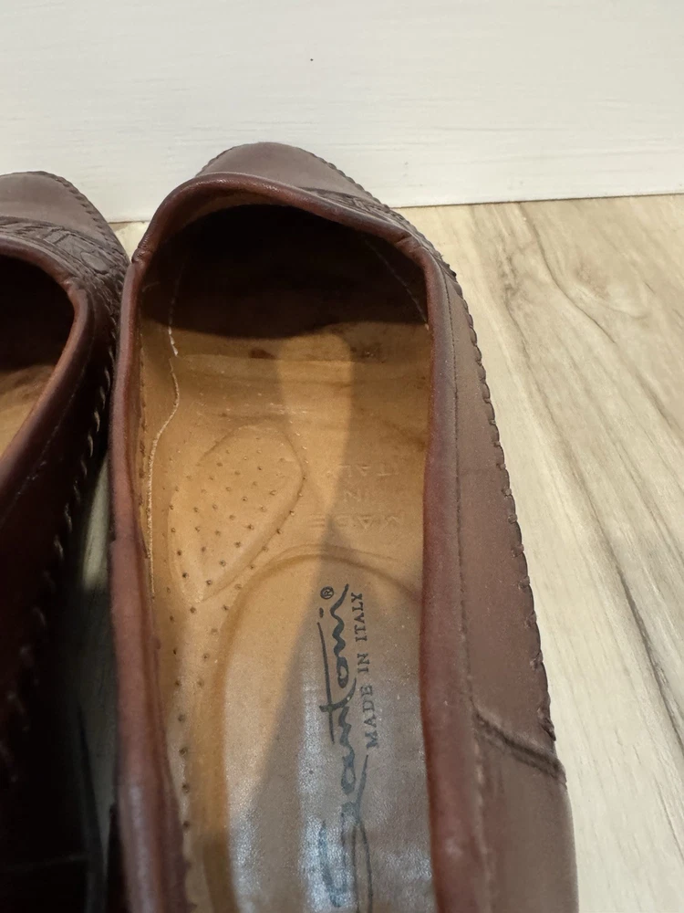 Santoni Men’s Leather Brown Loafers Tassels Made In Italy Size 9
