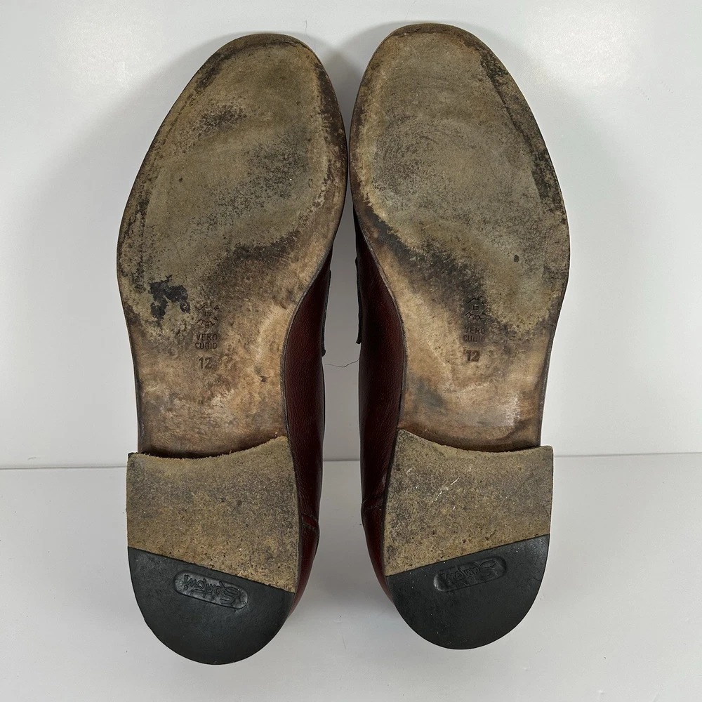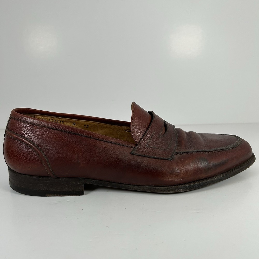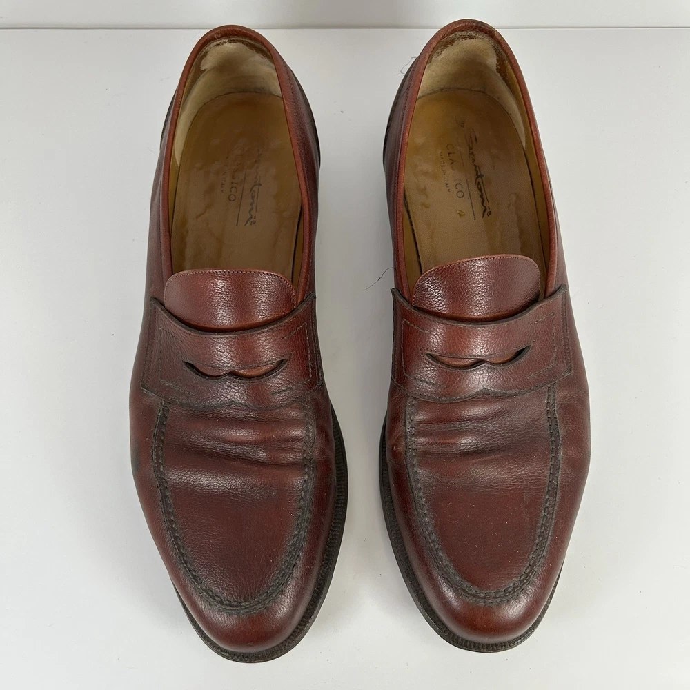 Santoni Italy Tristan Hand Antiqued Brown Leather Dress Shoe Penny Loafer Men 12 Good overall condition. Fast shipper.