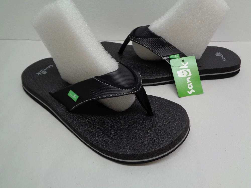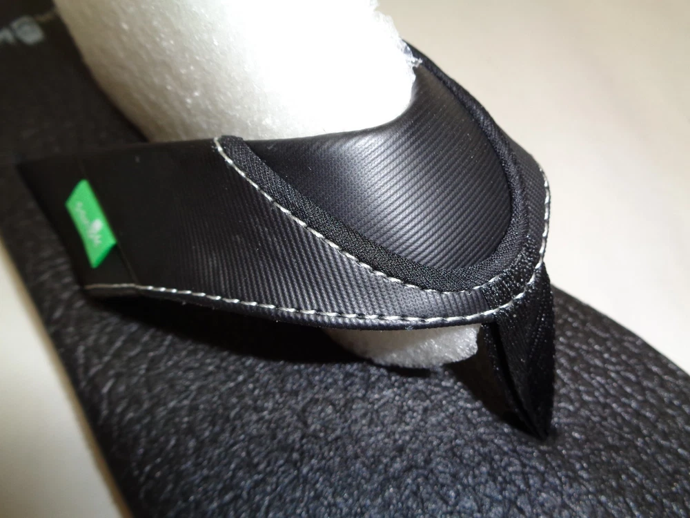 Sanuk Size 9 BEER COZY Yoga Mat Flip Flops Thongs Sandals New Mens Shoes -Style: BEER COZY FLIP FLOP, SMS2839C -Color: Black -Man made upper -Textile lining -Rubber outsole - Thong flip-flop featuring nylon webbing toe post and no-slip footbed crafted from real yoga mat - Arch cookie for added comfort - Happy U sponge rubber outsole -UK 8, Eur 42, and Japan 27