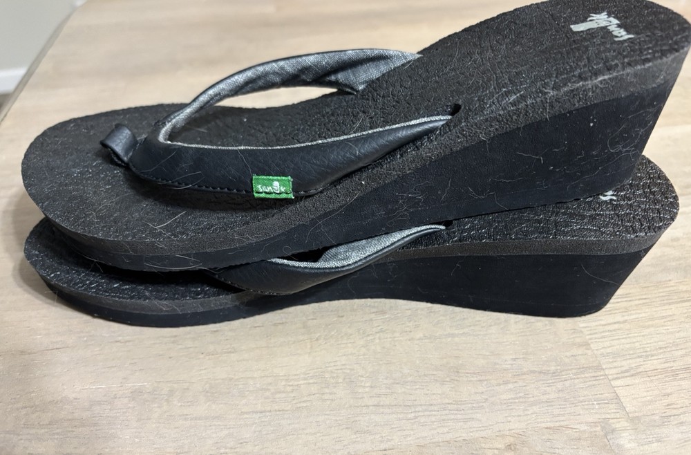 Sanuk Women’s Wedge Yoga Mat Flip Flop size 9 Heel 2”