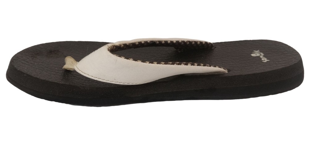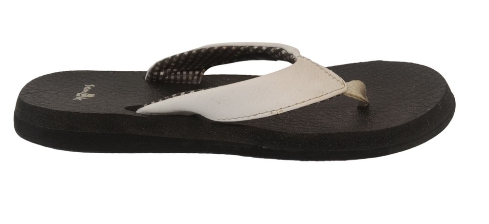 Sanuk Yoga Mat Sandals for Women - Size 6 White Thong Flip Flops with Soft, Comfortable Yoga Mat Footbed.