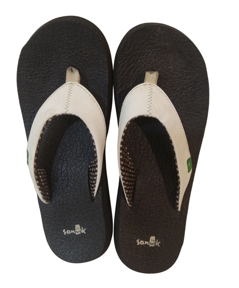 Sanuk Yoga Mat Sandals Womens Size 6 White Thong Flip Flop Shoes Flats Soft *** Item Specifics *** Brand - Sanuk Condition - *** Pre-Owned *** Good Condition Has A Peel On Right Top Bed Of Shoe And Sticky Candy On Bottom Right Shoe Type - Sandals Color - White Size - 6 Material - Rubber Style - Thong, Flip Flops Gender - Women's Pattern - Solid Season - Spring, Summer Care - Damp Cloth PLEASE READ CAREFULLY !!! *** All Photo's Are Of The Actual Item(s) That You Will Receive Guaranteed *** *** Please Inspect Your Items That You Receive To Assure That They Arrived Safely *** We Ship From The U.S ***(1 Or Same Day Handling Time) If Item(s) Are Purchased On Or Before 1 PM EST Your Item(s) Will Be Shipped The Same Day Of Purchase.. We Offer FREE 30 Day Money Back Guarantee Returns On All Items. Thank You For Stopping By And Have A Great Day!! HAPPY AND SATISFIED CUSTOMERS ARE OUR # 1 PRIORITY !!!