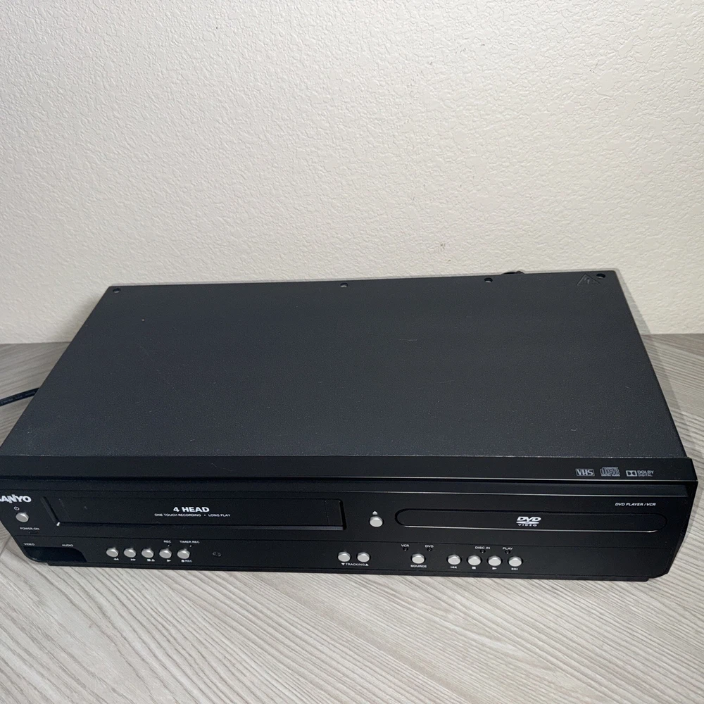 This Sanyo DVD Player/VCR Recorder Player Combo FWDV225F is a versatile unit that can play various formats such as DVD and VHS tapes. It features a composite video RCA connectivity and has four VCR heads for optimal playback quality. The unit is designed in black color and is a region code 1 DVD player. This device is perfect for those who want to play their old VHS tapes or DVDs without the need for separate devices. It is a reliable unit that has been tested and works perfectly. The Sanyo brand is known for its quality electronics, and this DVD player is no exception. No remote. Works great
