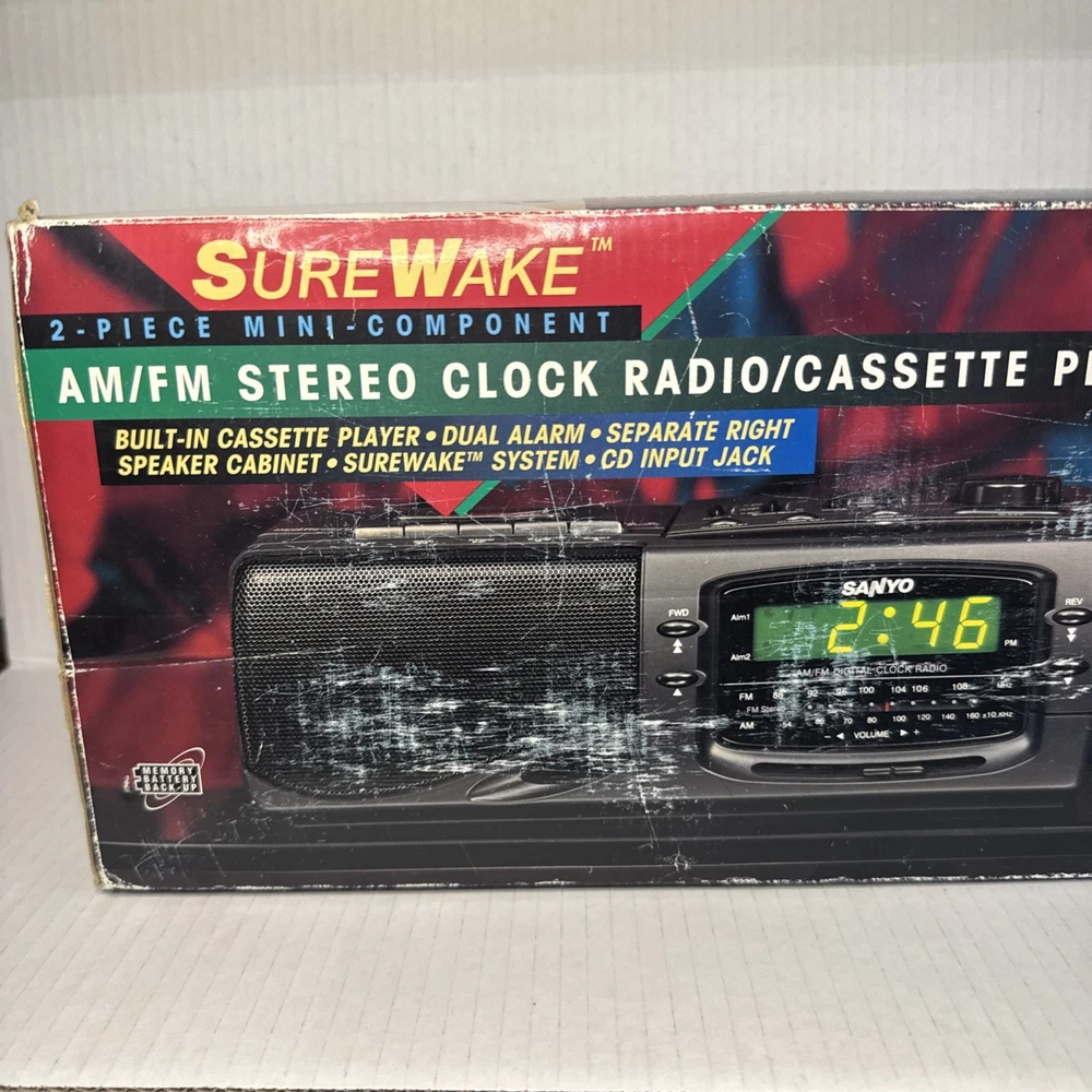 This Sanyo alarm clock radio is a fantastic retro find! The cassette player works perfectly, and the sound quality is surprisingly crisp. Even though the box was opened, everything inside is pristine—like brand new. The wake-up alarm is reliable, and the vintage design adds a cool touch to my bedside. Highly recommend for anyone who loves classic tech!