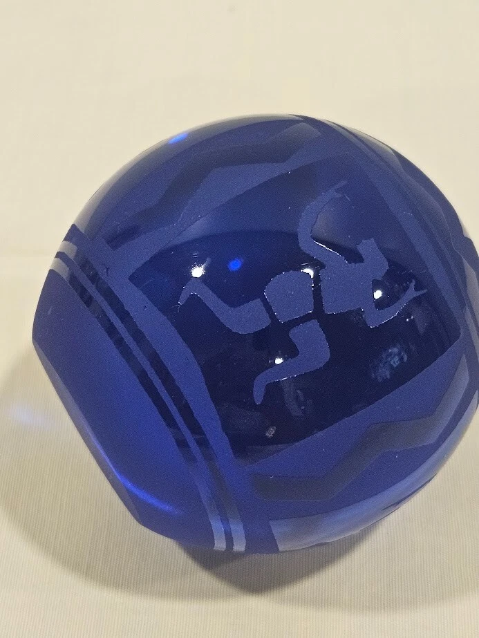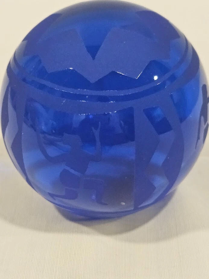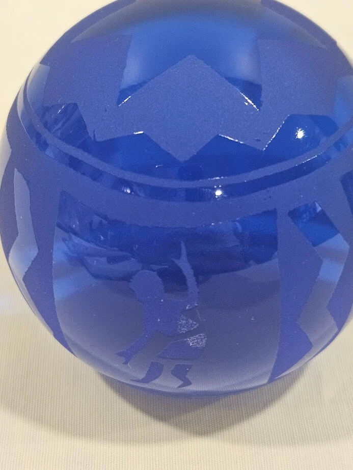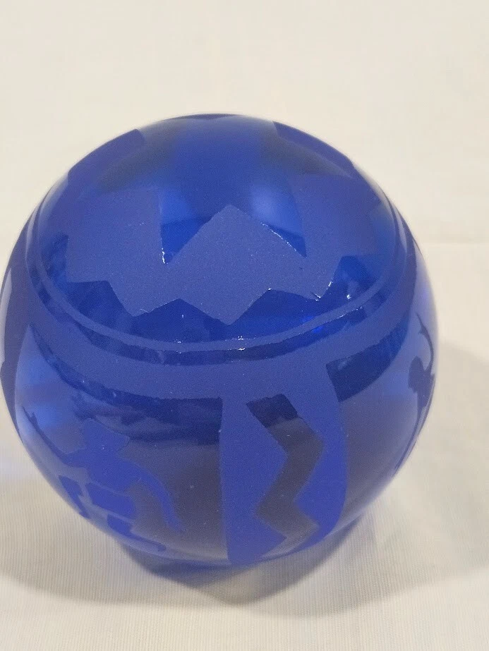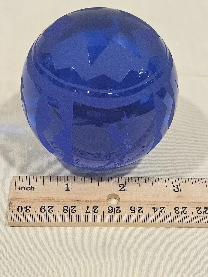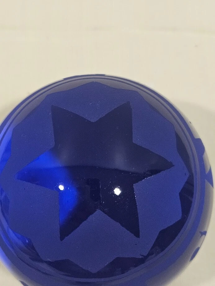 Saphire Blue Glass Ball Paperweight Acid Etched Star & Figures 3 in Vintage. Ships from a smoke free home! Please see all photos for exact item condition. Thank you for checking out my store! All items are shipped within 1 or 2 business days. Make a bundle to save on shipping cost.