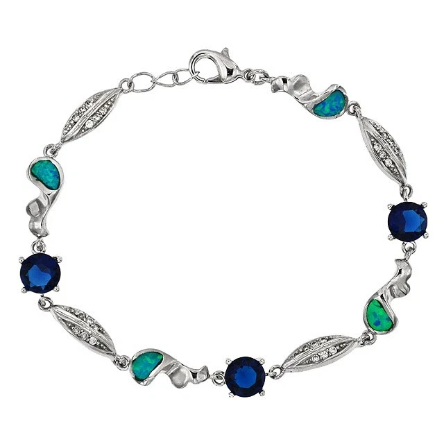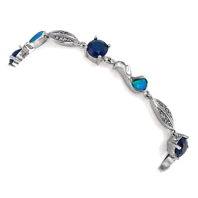 Sapphire & Australian Opal Inlay 925 Sterling Silver Tennis Bracelet OX1