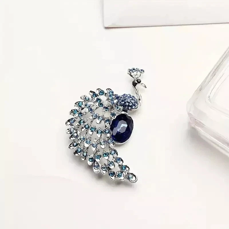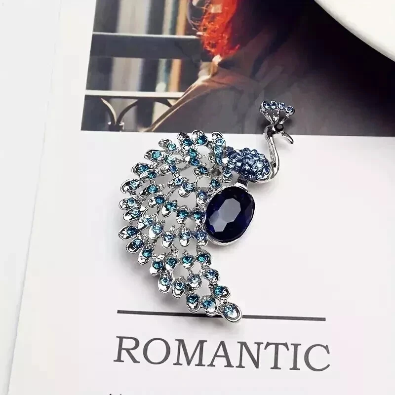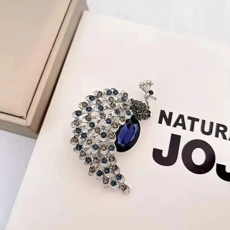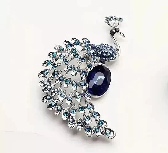 Sapphire Peacock Silver Brooch Vintage Style Diamante Brooch Pin Charm - Boxed Add a touch of vintage style to your collection with this stunning Sapphire Peacock Silver Brooch. The intricate design features a beautiful mix of rhino-stone and diamante detailing, set in alloy metal. The brooch is finished with a stunning crystal in a gold colour, making it a perfect accessory for any occasion. This elegant brooch is a must-have for anyone who loves to accessorise. It comes in a beautifully boxed package, making it a great gift for someone special. Perfect for adding a touch of glamour to any outfit, this brooch is sure to become a favourite in your jewellery collection.