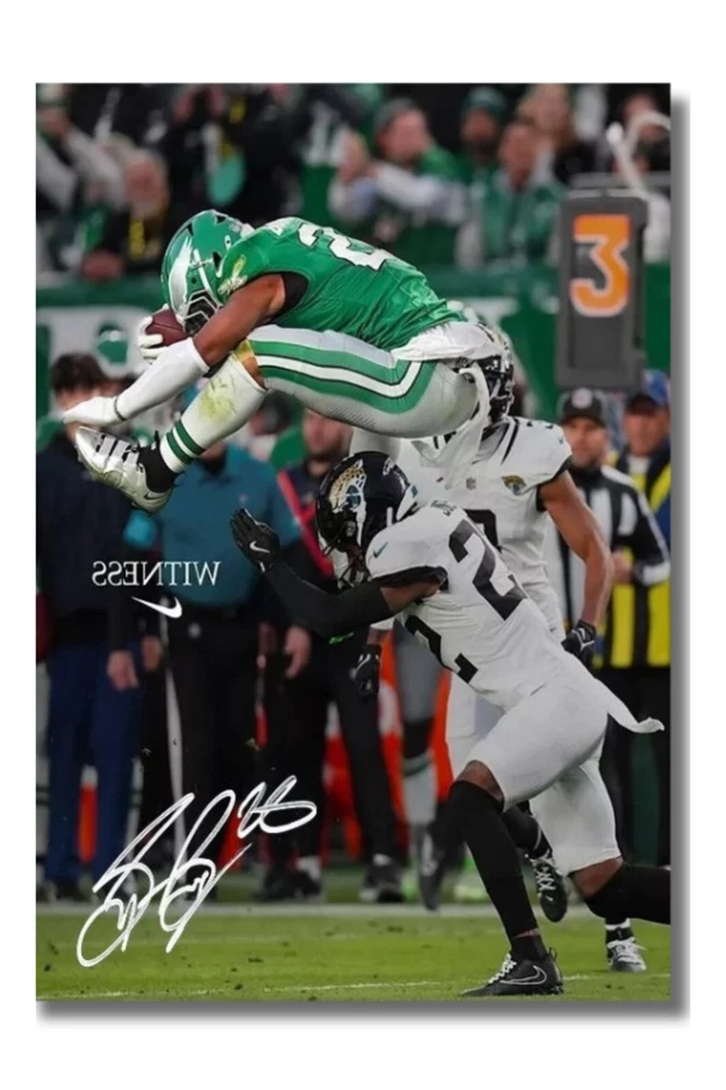 Saquon Barkley's Backwards Hurdle Poster 2024