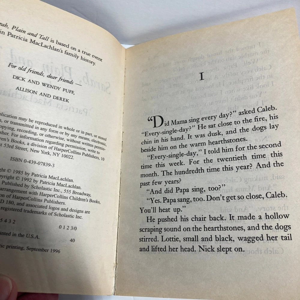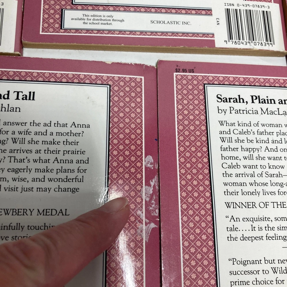 A special edition set of the beloved children's book Sarah Plain and Tall by Patricia MacLachlan. This collection features multiple copies of the award-winning novel, including an afterword from the author. Perfect for classroom sets, book clubs, or young readers eager to explore classic American literature, these books are ideal for sharing stories and sparking imagination during quiet reading time or family story sessions. Author: Patricia MacLachlan Book Title: Sarah, Plain and Tall Language: English Topic: Children Publisher: Scholastic Inc. Format: Paperback Genre: Children & Young Adults, Historical, Bedtime Stories & Nursery Rhymes Original Language: English Features: Illustrated Type: Novel Edition: Special Edition Keywords: Newbery Medal winner, historical fiction, school reading, early reader, childrens literature, paperback books, classic stories, author's afterword, Scholastic, family reading, educational, learning Good condition. These were used in a classroom and show some signs of wear. Stickers and sharpie markers may show the guided reading and other levels. Some show the number of running words in that book (RW). Some have teacher names written in them and/or other marks/stickers. We welcome questions and offers! Thank you for taking time to view and consider this item!