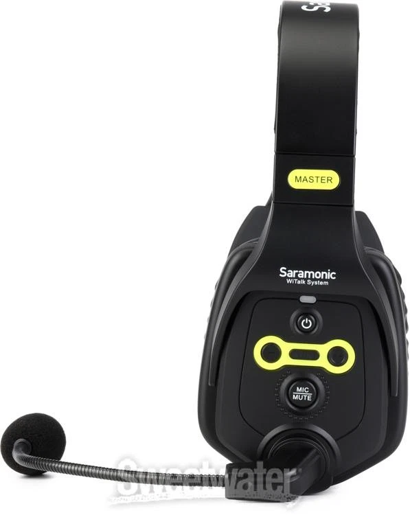 Master Headset for WiTalk Communication Systems Operating at up to 1,312 feet of line-of-sight range, the Saramonic WiTalk-SMH headset supplies extremely versatile communication between up to four Wi-Talk remote headsets, making it a perfect option for smaller-size production teams, house of worship spaces, on-the-go filming ventures, and much more. With its hands-free design and lightweight build, the WiTalk-SMH is a cinch to integrate into any compatible WiTalk system, and it all comes complete with an included carrying case for easy travel and transport! Best of all, thanks to its rotating earcup and leatherette interior earpad, Sweetwater audio techs have found the WiTalk-SMH to be a comfortable communication option — even during longer work sessions. From broadcasting to efficient team communications and beyond, the WiTalk-SM will ensure your productions remain efficient and on track.Saramonic WiTalk-SMH Features: Single-ear master intercom headset — compatible with up to 4 WiTalk-SRH/WiTalk-DRH remote headsets Operates via Sweetwater is an Authorized Saramonic Dealer Genuine New Item Sweetwater's 2-year warranty Saramonic WiTalk-SMH Single-Ear Master Headset for WiTalk Intercom Systems Single-ear Master Headset for WiTalk Intercom Systems with Rotating Earcup, Quick-charge Battery, and Carrying Case Master Headset for WiTalk Communication Systems Operating at up to 1,312 feet of line-of-sight range, the Saramonic WiTalk-SMH headset supplies extremely versatile communication between up to four Wi-Talk remote headsets, making it a perfect option for smaller-size production teams, house of worship spaces, on-the-go filming ventures, and much more. With its hands-free design and lightweight build, the WiTalk-SMH is a cinch to integrate into any compatible WiTalk system, and it all comes complete with an included carrying case for easy travel and transport! Best of all, thanks to its rotating earcup and leatherette interior earpad, Sweetwater audio techs have found the WiTalk-SMH to be a comfortable communication option — even during longer work sessions. From broadcasting to efficient team communications and beyond, the WiTalk-SM will ensure your productions remain efficient and on track. Saramonic WiTalk-SMH Features: Single-ear master intercom headset — compatible with up to 4 WiTalk-SRH/WiTalk-DRH remote headsets Operates via 1.9GHz frequency with up to 1,312-feet line-of-sight range Hands-free design for truly wireless communication Up to 5 hours of continuous runtime when using 4 remote headsets Rotating earcup with leatherette earpad design for comfortable transmission in any communication situation Lightweight design and included carrying case for easy travel and transport Specification Detail Application Intercom (Master) Fit Style Circumaural (Around the Ear) Frequency Response 300Hz-5kHz Microphone Type Condenser Wireless WiTalk 1.9GHz intercom system Plug Size USB-C (charging) Material Leatherette Earpads Weight 0.66 lbs. RETURN INFORMATION We want you to be completely happy with your purchase from Sweetwater. If you are not satisfied with your product, you may return it for a refund of the purchase price within 30 days. If your purchase was eligible for Free Shipping, the shipping cost will be deducted from your credit or refund. Returns must be in the complete and original packaging with all accessories and complete documentation (Owner's Manual, warranty card, quick start guides, etc.), show no signs of wear or use, and include a Return Authorization number or be subject to a restocking fee.