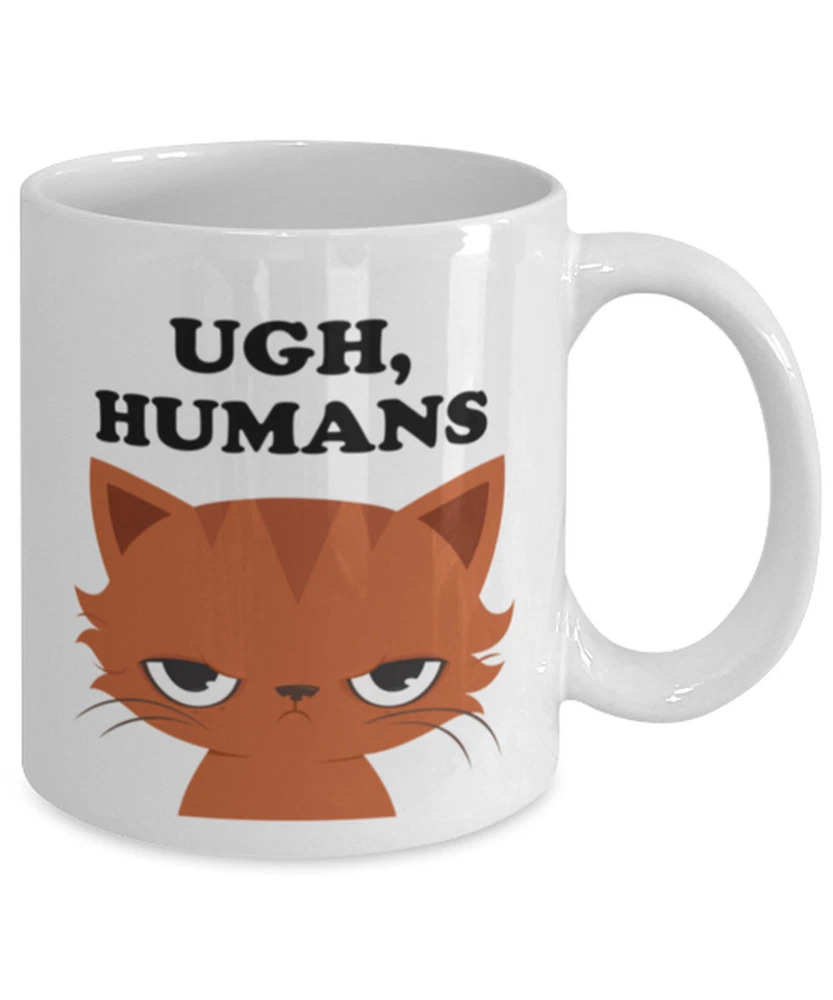 Sarcastic Cat Funny Coffee Mug Ugh Humans Funny Sassy Cat Sarcastic Crazy Gift Product Details.. This high quality 11oz. ceramic white mug has a premium hard coat that provides crisp and vibrant color reproduction sure to last for years. Perfect for all hot & cold beverages. The highest quality printing possible is used. It will never fade no matter how many times you wash it. Material: 100% Ceramic. Print both sides. Dishwasher and Microwave Safe. High Gloss + Premium White Finish. Printed in the U.S.A. Personalized & Custom. We support personalized and custom mug to add custom, when placing an order, you can add notes to the "order note" in shipping address section. Also you can contact us directly via message. Shipping Info. Ready to ship in 1 to 2 business days, All products are made-to-order and proudly printed in the United States. Shipped by USPS and DHL, You will receive your order in 5-7 days. Replace & Refund. All products are defective during shipping broken, chipped will be replaced free of charge. You are not satisfied with the product, we will refund 100% money to you. If any other issues arise, please do not hesitate to message, we would be more than happy to assist you.