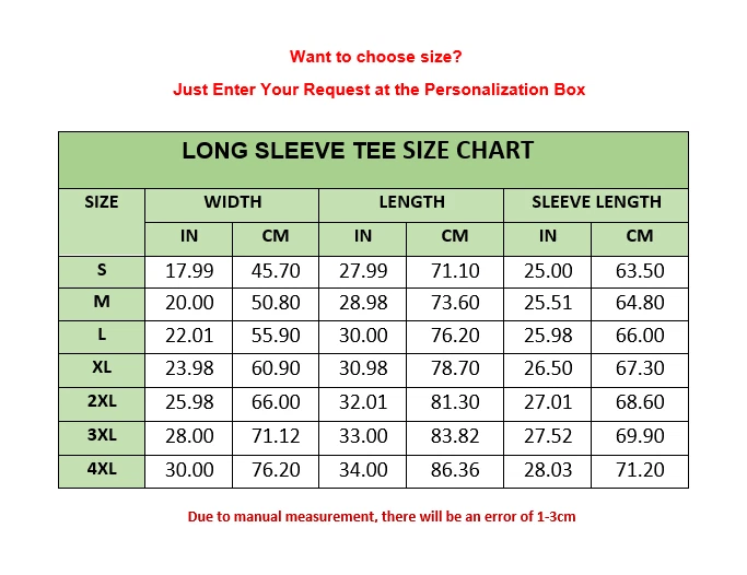 If you are ordering product please message me or note the color and size you require. We have sizes available from S-5XL and prices are the same for all sizes If the product you purchased is a name or number customized product, please note in the Personalization box or send us a message. To ensure the fastest delivery time, customers in each region will receive their shipments from the warehouse located in that region Delivery Time Customers in the USA, Canada: Shipped from the USA warehouse, delivery within approximately 5-9 business days. Customers in the UK and EU: Shipped from the EU warehouse or UK warehouse, delivery within approximately 4-8 business days. Customers in Australia: Shipped from the Australia warehouse, delivery within approximately 4-8 business days. If you want to buy a Sweatshirt, Hoodie or Tank Top but there are no options on the product listed, please message us for assistance. A. ORDER PLACEMENT INSTRUCTIONS Please review all the provided photos. Select your preferred shirt size. Indicate your color preference. Click the "ADD TO CART" button. You can return to add more items for your family or proceed to checkout. If you have added any additional notes, continue by choosing "Proceed to checkout." Your selected shirt will be prepared for shipping. B. PRODUCT DETAILS Experience timeless style and sustainability with this long sleeve shirt, crafted for both comfort and durability. Premium Vintage Feel Made from environmentally-friendly cotton, this fabric offers a thicker, vintage-inspired texture that feels soft and luxurious. Seamless Construction Designed with a tubular knit technique, the garment eliminates side seams, reducing fabric waste and ensuring a clean, polished look. Ribbed Knit Collar with Seam The ribbed collar provides exceptional elasticity and shape retention, enhancing the durability of the shirt. Reinforced Shoulder Tape Twill tape along the shoulder seams stabilizes the garment's back, preventing stretching and maintaining its structure. Versatile Fiber Composition Solid colors: 100% cotton Safety and Heather colors: 50% cotton, 50% polyester Sport Grey: 90% cotton, 10% polyester Elevate your wardrobe with this versatile long sleeve shirt that combines classic design with eco-conscious production. FAQs: I JUST PLACED AN ORDER, WHEN WILL IT SHIP? It is noted that your order processing time can be affected if the initial information provided to us is insufficient or incorrect such as inaccurate or incomplete payment; incorrect address information and insufficient product measurements. We seek your understanding and support if it is the case. FEEDBACK Please feel free to contact us if you have any questions about the merchandise. If you are satisfied with the item, please leave a positive feedback and full-star rating for us! Your satisfaction is the most important thing to us. Please contact us first if you could not leave a positive feedback! Just let us know what the problem is, and we are happy to help. CONTACT US If you have any questions or suggestions, please email to us immediately. Your messages will be answered within 24 -48 hours. We shall try our best to solve your problem to your satisfaction. Have A Nice Day! Thank you On Dec 7, 2024 at 00:57:11 PST, seller added the following information: On Dec 17, 2024 at 10:50:22 PST, seller added the following information:
