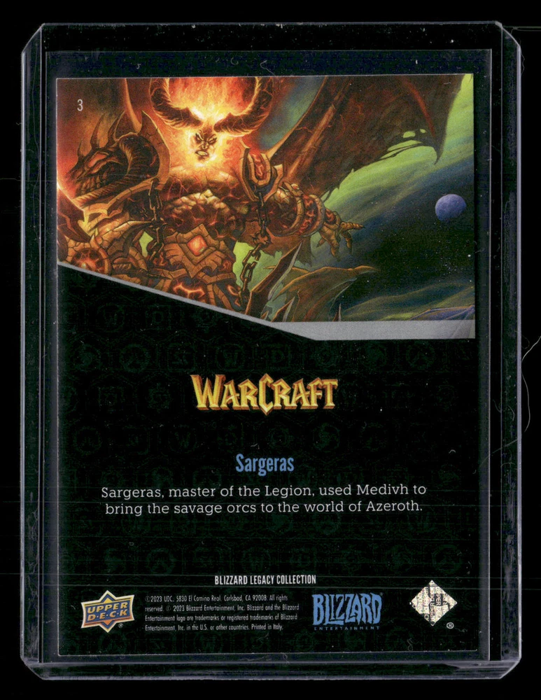 Wacicha's Trading Post Upperdeck Blizzard Card Sargeras 2023 Upper Deck Blizzard Legacy Collection #3 All Orders under $20 are shipped in a cardboard Photo Mailer with Tracking Provided by EBAY Standard Envelope. Cards are scanned front and back. Please use the Zoom to make your own determination of condition. Descriptions in the title are for information only. Please note that scanned images may not pick up the exact tones/hues of the original item. REFER TO PHOTOS FOR DETAILS AND USE ZOOM FEATURE
