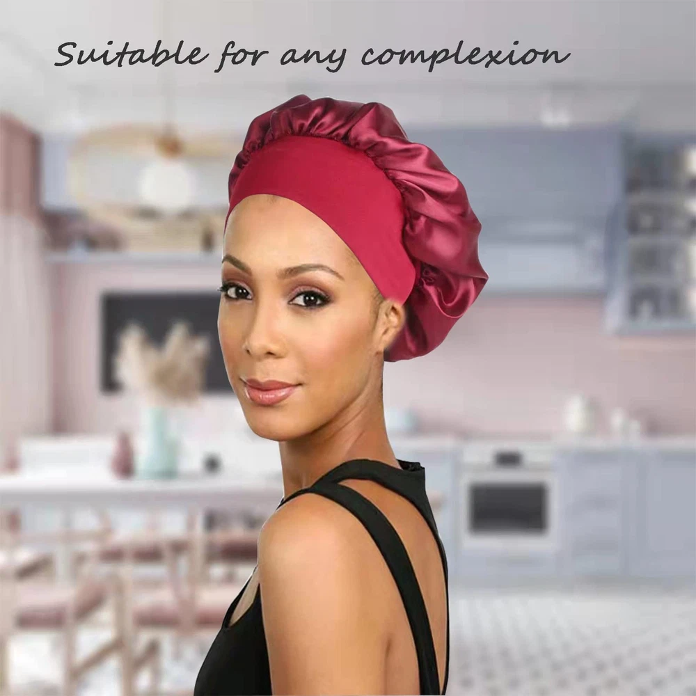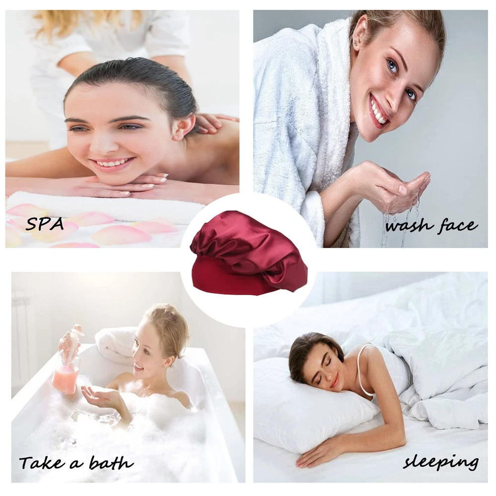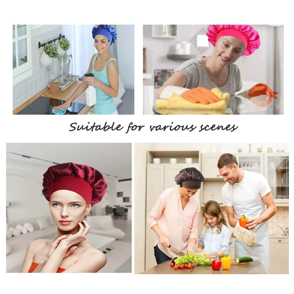 đŸŒș【Satin bonnet with Stretchy Wide Band】:Our satin cap a wide-brimmed tightening strap at the bottom. The intimate design of silk bonnet makes your head more comfortable, and the band can be stretched to adapt to different head sizes. The width range is suitable for most head sizes. Hair bonnet is comfortable to wear, but it will not make your head feel tight. Silk sleep cap there are 4 colors for you to choose. You can choose the sleep bonnets you like according to your pajamas . 💞【silk sleep cap versatile】:Satin bonnet can wrap your hair to sleep. When you wake up, your hair will not knot. silk sleep cap can also keep your bed away from hair oil or water. The silk bonnet for curly hair is not only suitable for sleeping, but also very convenient for daily use. Wash your face, make-up, spa, take a bath, even do housework, running, yoga, etc. silk sleep cap can be used in many occasions . sleep bonnets for women can also be applied to chemotherapy patients. đŸŒŒă€Sleep caps for women function】: silk bonnet is very comfortable to wear and can keep the hair intact. You no longer have to worry about your hair remaining on the pillow. The satin sleep cap is suitable for all hair, such as natural hair, long hair, curly hair, braids, straight hair, ponytails, etc. With long hair spread on the pillow, satin bonnet can effectively prevent the neck skin from being irritated by the hair and provide you with deep sleep and good dreams. 🍀【high quality fabric and technology】:The satin sleep cap is made of high-quality satin, which is soft, breathable and not stuffy. The satin sleeping cap is very comfortable to wear, and the sleeping cap can help you sleep quickly. We have improved the silk bonnet sewing technology to make it not easy to tear and durable. đŸŒč【Washing Instructions for Satin Silk Bonnet】:1 .Hand wash or machine wash in cool water on low setting/ gentle cycle; 2. Satin can be hand washed with cold water and gentle soaps; It should be laid out flat or hung to dry; 3. Therefore, after you receive the shower cap, wash it with cold water before wear it and it wil not fade. 👍【Best Gift for Women】Our satin bonnets are made of premium polyester and available for pretty colors ,Silk hair bonnet is a great present in Thanksgiving, Christmas, New Year, Birthday, Mothers 'Day, Anniversary, Valentines for your wife, mom, girlfriend, daughter