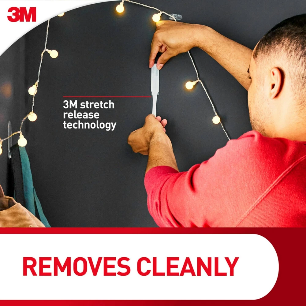 HOLDS UP TO 4 POUNDS: One package of the Large Double Wall Hooks includes two large wall hooks and two large adhesive strips; each adhesive wall hook can hold up to 4 pounds DAMAGE FREE HANGING: Wall hooks work without leaving holes, marks or sticky residue so you can move and rehang hats, calendars, keys, measuring spoons, cleaning tools, jewelry, and decor or even use as a coat hook to hang your favorite jackets and coats WORKS ON A VARIETY OF SMOOTH SURFACES: Adhesive wall hangers work on a variety of smooth surfaces, including painted walls, finished wood, painted concrete cinder blocks, laminate, glass, metal and tiles SURFACE PREP: Clean with rubbing alcohol to remove grime and dust to allow the hanging hooks to bond to the surface; the indoor temperature must be between 50 degrees Fahrenheit and 105 degrees Fahrenheit USAGE TIPS: Wait seven days after painting before using the Hooks to allow paint to cure; do not hang over beds or on wallpaper **wall hooks for hanging EASY CLEAN REMOVAL: Lightly hold the top of the wall adhesive strips and slowly pull straight down towards the floor to remove the 3M Hooks holding college dorm decor and prevent damage of walls and surfaces WHAT TO HANG: Use these wall hooks to hang hats, calendars, keys, measuring spoons, cleaning tools, jewelry, and decor or use as a coat hook to hang your favorite jackets and coats REUSE WITH REPLACEMENT STRIPS: Reuse your hook and hardware again by purchasing Refill Strips