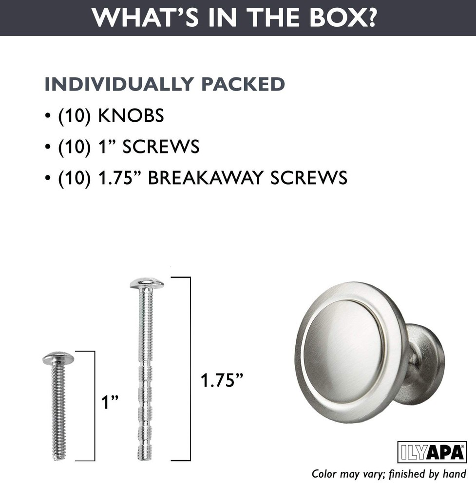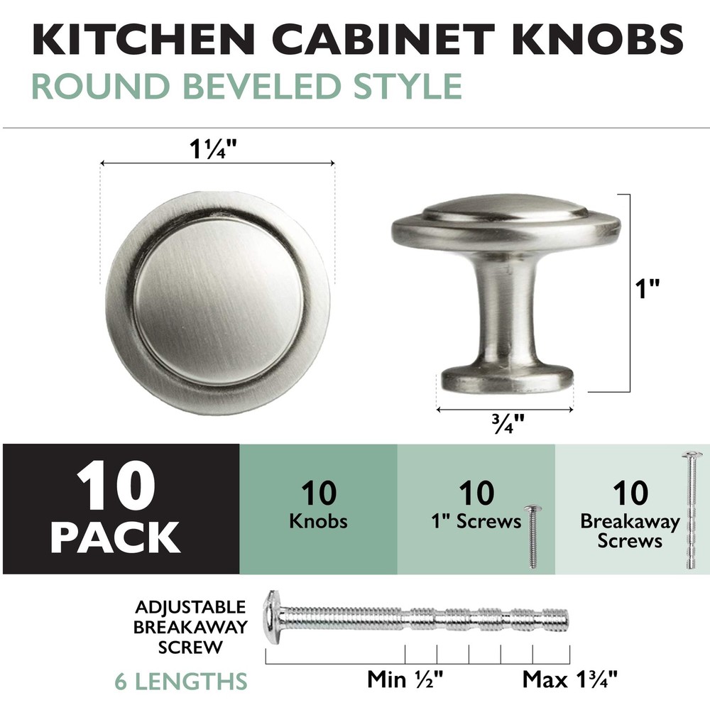 These knobs are a game-changer for my kitchen! The satin nickel finish looks sleek and modern, and the perfect size makes them easy to grip. Installation was a breeze, and the set of 10 is great for updating all my cabinets. They feel sturdy and high-quality—no cheap finish or loose fittings. Love the subtle shine that ties everything together. Highly recommend for an affordable upgrade!