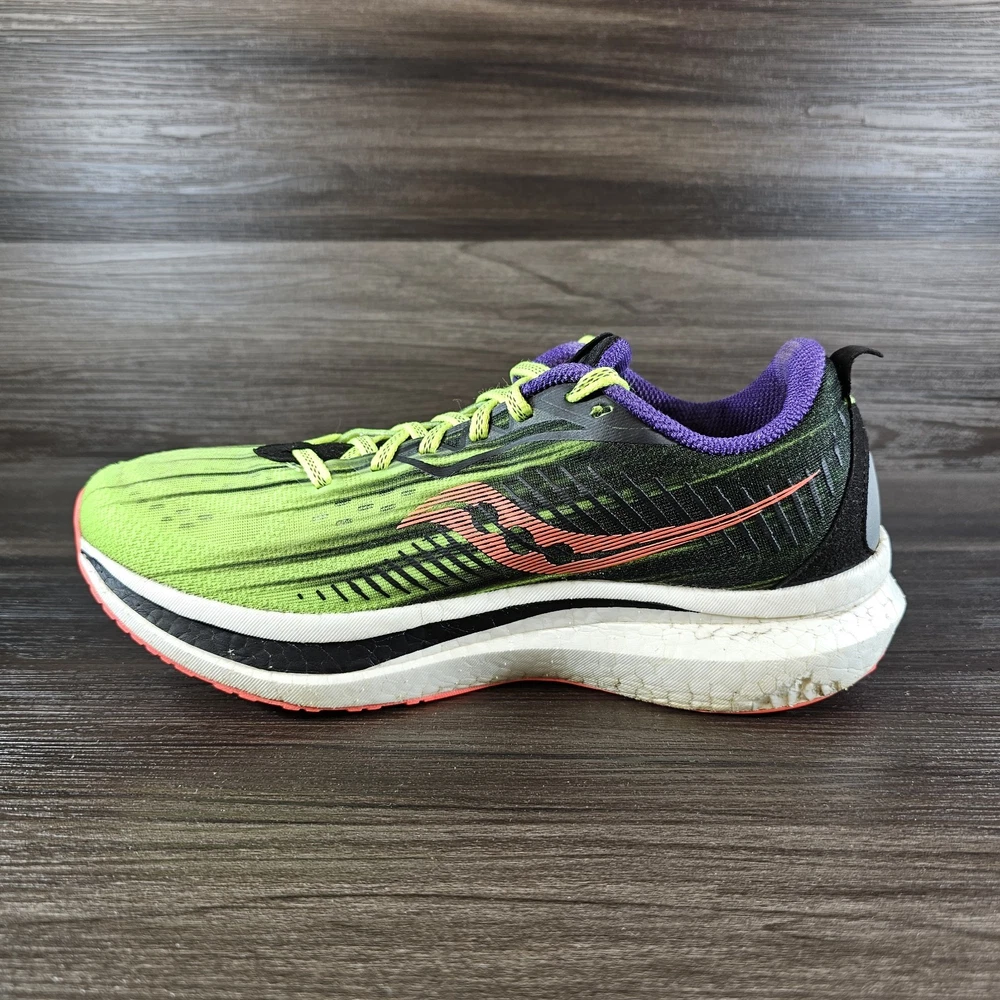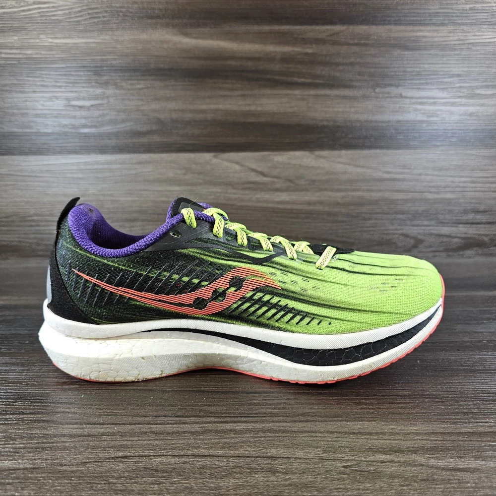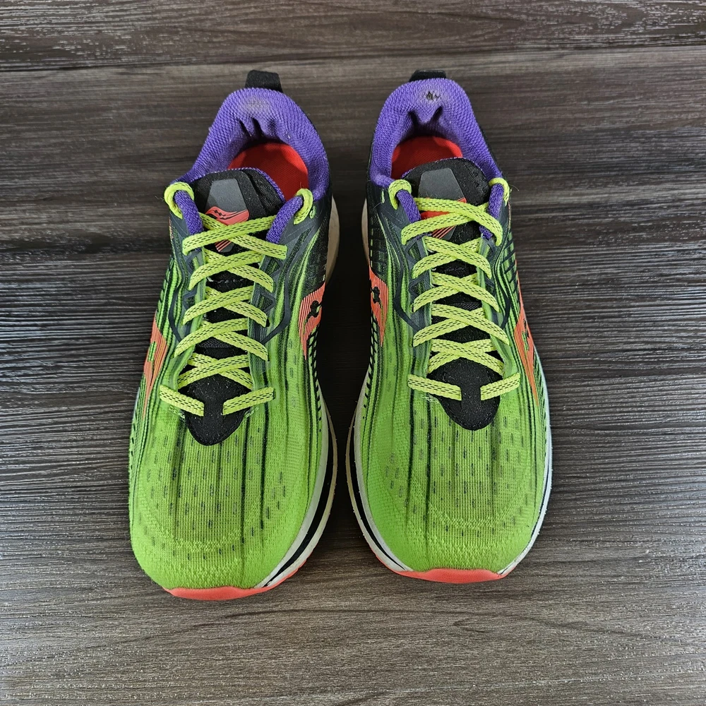 1. These Saucony sneakers are a dream—super lightweight with amazing energy return! The neon green pops, and they fit true to size. Super comfortable for long runs, and the used condition is near perfect. A steal for the price!