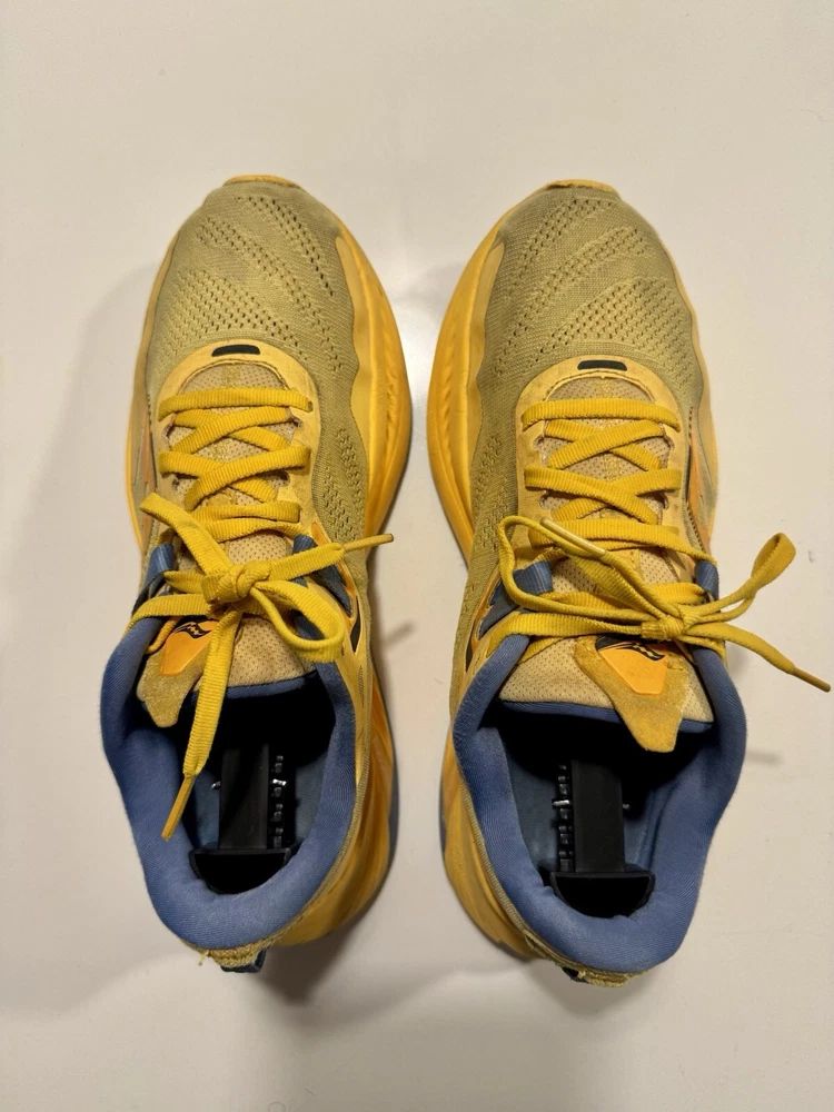 Saucony Guide 15 Womens Shoes Size 8.5 Yellow Running Walking Athletic Sneakers Pre - Owned. Uppers are still in tack and in good condition. Mesh is a bit faded from normal use. No Box and no returns.