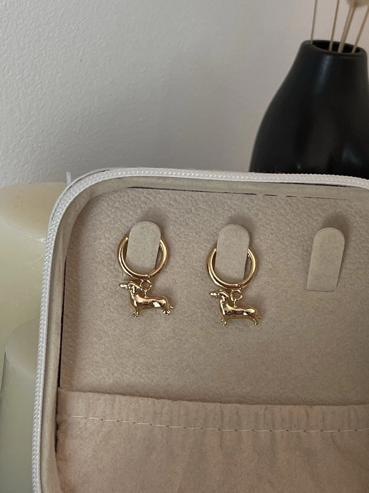 Signed: No Ear Area: Lobe Style: Hoop Brand: Unbranded Country/Region of Manufacture: United Kingdom Main Stone: No Stone Features: Stackable, Nickel-Free Occasion: Anniversary, Engagement, Graduation, Confirmation/Communion, Birthday, Christening, Father's Day, Christmas, Wedding, Valentine's Day, Mother's Day Vintage: No Theme: Animals & Insects Era: Undated Type: Earrings Personalise: No Hallmarked: No Metal: Yellow Gold Plated Main Stone Creation: Unknown Antique: No Colour: Gold Main Stone Colour: Gold Wholesale: No Metal Purity: 18k Customised: No Shape: Dog Base Metal: Stainless Steel Material: Brass, Stainless Steel Closure: Hinged Handmade: Yes