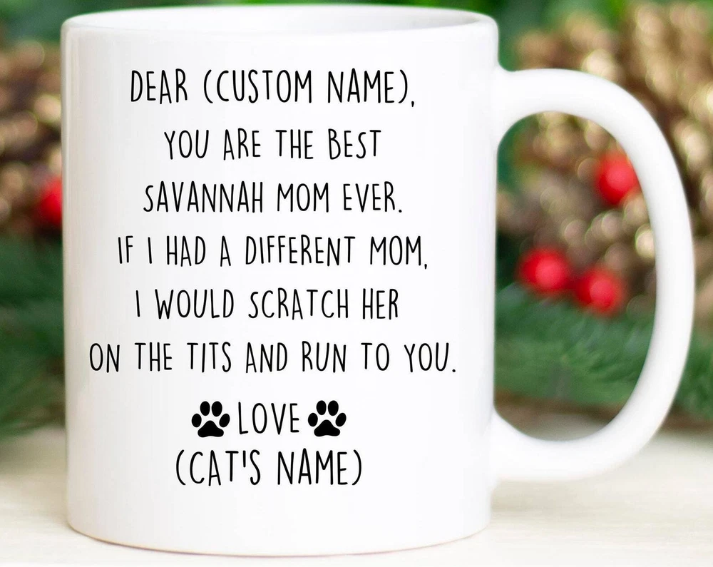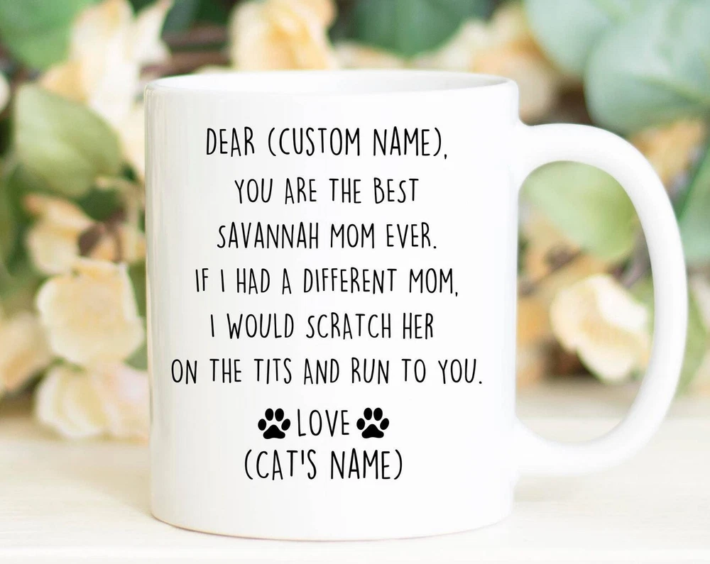 Savannah Cat Mom Birthday Gift Savannah Cat Mom Christmas Gift Savannah Mom Valentine Savannah Mom Appreciation Funny Savannah Mom Gift Product Details.. This high quality 11oz. ceramic white mug has a premium hard coat that provides crisp and vibrant color reproduction sure to last for years. Perfect for all hot & cold beverages. The highest quality printing possible is used. It will never fade no matter how many times you wash it. Material: 100% Ceramic. Print both sides. Dishwasher and Microwave Safe. High Gloss + Premium White Finish. Printed in the U.S.A. Personalized & Custom. We support personalized and custom mug to add custom, when placing an order, you can add notes to the "order note" in shipping address section. Also you can contact us directly via message. Shipping Info. Ready to ship in 1 to 2 business days, All products are made-to-order and proudly printed in the United States. Shipped by USPS and DHL, You will receive your order in 5-7 days. Replace & Refund. All products are defective during shipping broken, chipped will be replaced free of charge. You are not satisfied with the product, we will refund 100% money to you. If any other issues arise, please do not hesitate to message, we would be more than happy to assist you.