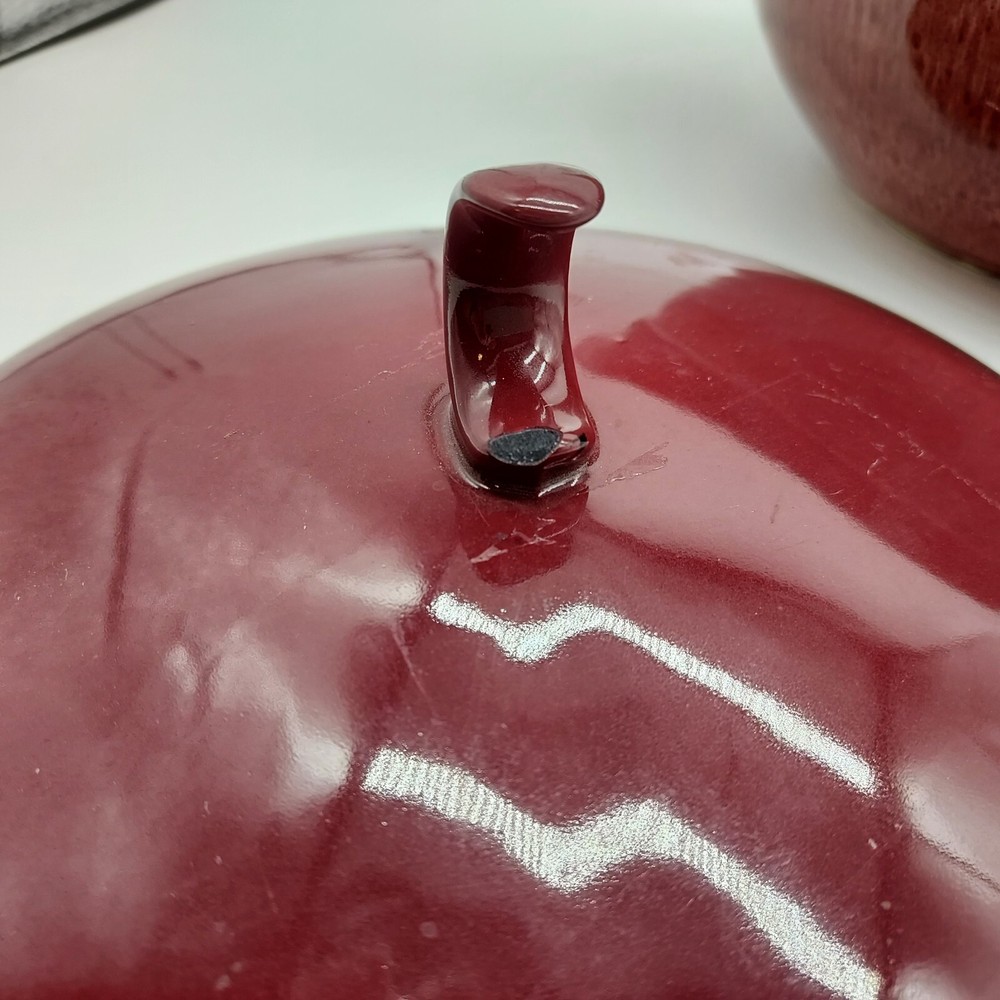 This vintage Hull Pottery casserole dish is a stunning addition to your collection. With a unique crescent moon design and multicolor finish, it will surely catch everyone's eye. Measuring 10 inches in length, 8.5 inches in width, and 3.5 inches in depth, this casserole dish has a capacity of 1.5 quarts and comes with a lid. It is made of high-quality ceramic material and was produced using pottery techniques in Ohio, USA during the 1950s. This original piece bears the impressed backstamp of the Hull Pottery brand and is a licensed reproduction. It can be used with electric or gas ovens and has a glossy surface coating. Add this beautiful casserole to your decorative cookware, dinnerware, and serveware collection today! Small chip on Lid handle. See photo