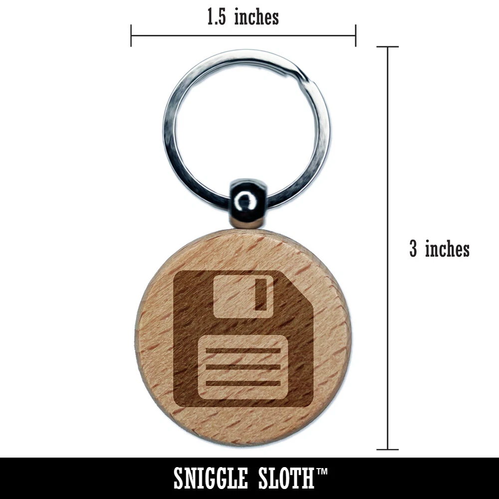 Save Icon Floppy Disk Engraved Wood Round Keychain Tag Charm