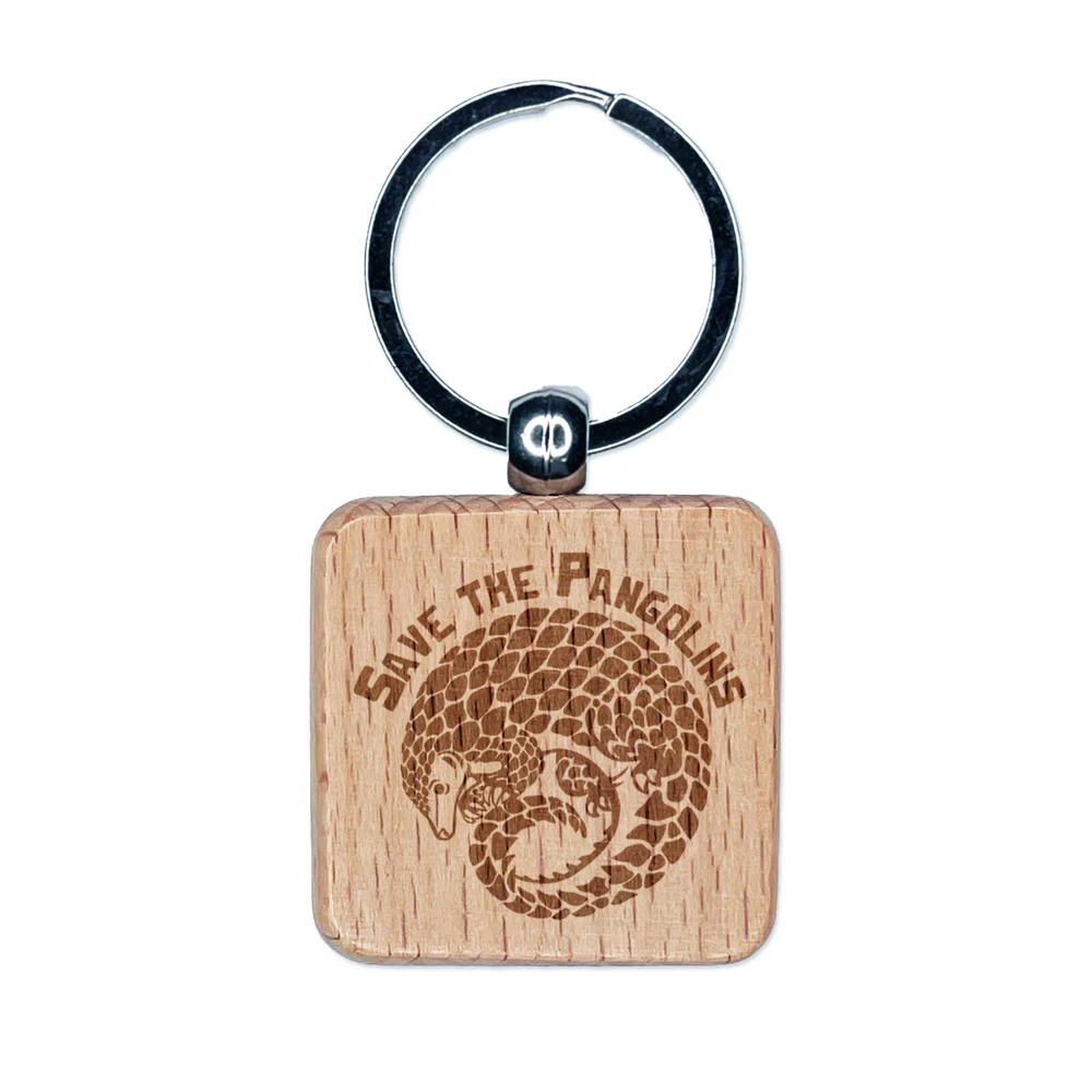 Save the Pangolins Endangered Species Engraved Wood Square Keychain Tag Charm