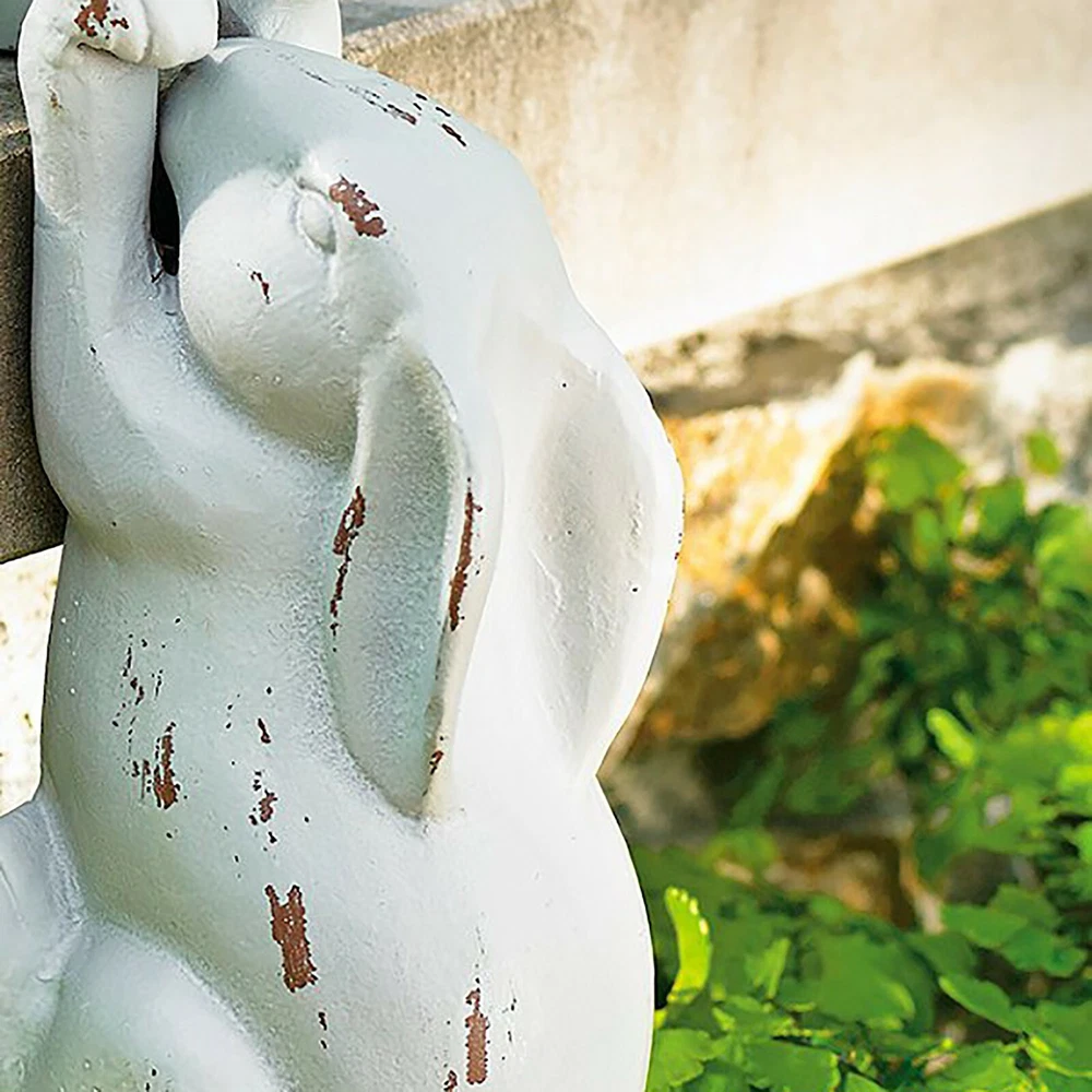 Saved By A Hare Sculpture Bunny Decor Products description: We’ll let you in on a little behind-the-scenes fun: everybunny at Grandin Road had an absolute ball crafting a name for our Saved by a Hare Sculpture. And we must admit, we’re pleased as Easter punch! Possesses four times the charm and delight of any single accent and draws a crowd of broad smiles and lighthearted comments. Display on steps, porch edge, garden table, or even indoors—when other Easter decorations are winding down the season, these silly rabbits are warming up for their year-round fun. Artist’s hand-sculpted original is expertly sand-cast in aluminum Rabbits are securely hand-welded together Antique white powdercoat is sparingly distressed for a well-loved appearance These rabbits are made of resin, so they look lifelike. The whole ornament is made up of four rabbits and they are not removable, so you don't have to worry about any parts coming apart. Package include: 1 x sculpture On Dec 19, 2024 at 20:15:56 PST, seller added the following information: