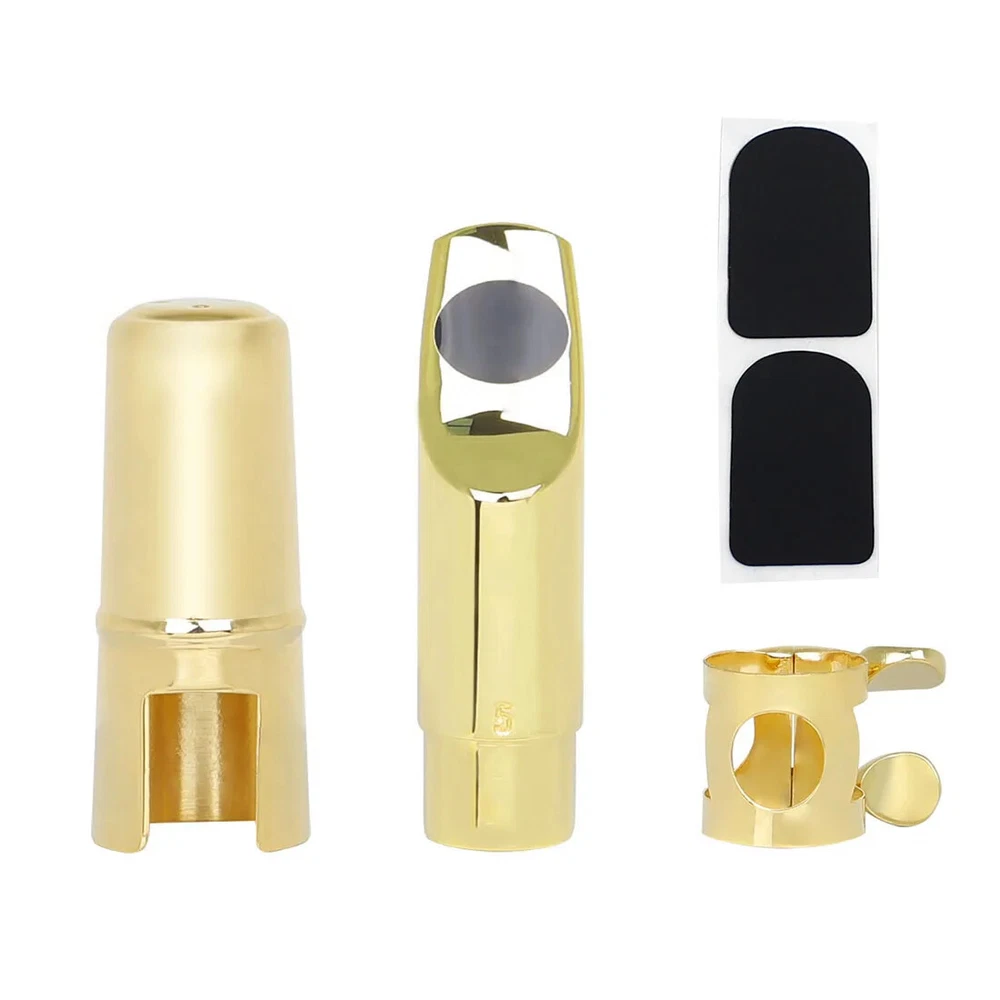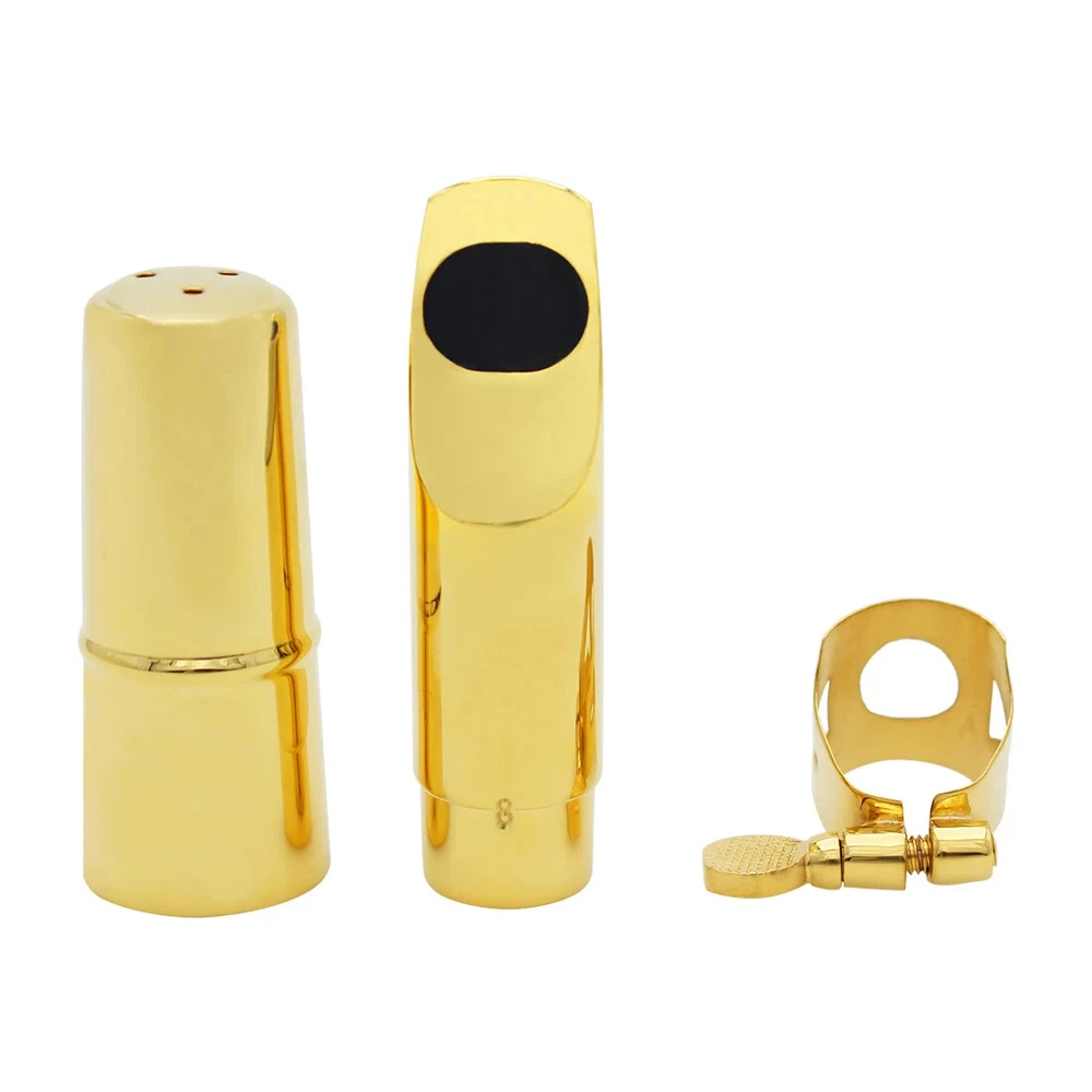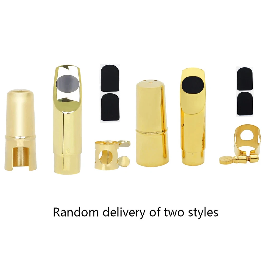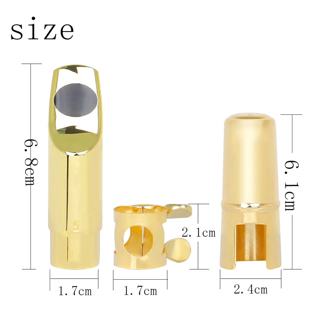 Soprano Saxophone Mouthpiece Metal Flute Head 5/6/7/8 Mouthpiece Strap Clip Cap Hand Polished Soprano Saxophone Accessories Description -Metal headjoint, hand-polished for a thick, pure sound and excellent resonance. -Reduced breath loss, more coherent, more transparent tone, longer use. -Original tooth pads can effectively protect the headjoint and teeth. Specification Product Name: Saxophone Headjoint Colour: Gold Material: metal Application: Soprano saxophone Packing list Saxophone head*1 Clip*1 Head cap*1 Pads*2 Only the above package content, other products are not included. Light shooting and different displays may cause the color of the item in the picture a little different from the real thing. The measurement allowed error is 1-2cm.
