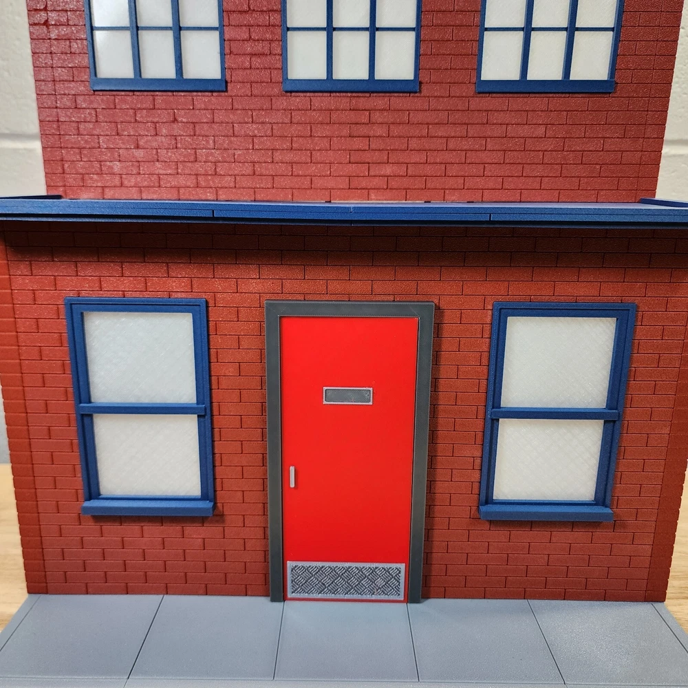 1/12 Scale Street Scene Diorama V2 Brick Red– Custom Building with Red Door and Brick Texture Description: Elevate your action figure displays with this intricate 1/12 scale Street Scene Diorama. Perfect for 6 and 7-inch action figures, this diorama offers an authentic urban backdrop for your collection. Featuring a striking red door, detailed brickwork, and large windows, this handcrafted piece brings the feel of a real city street right to your display shelf. With 64 individual pieces that will need to be snap and glued together, it’s ideal for customizing and building out a full scene. Diorama display is made to order, please allow five business days before shipping. Features: Detailed Brick Texture: Each brick is designed to provide a realistic urban aesthetic, perfect for any diorama enthusiast. Bold Red Door: The vibrant red door creates a visually appealing focal point for your scene. Large Windows: Classic arched windows that enhance the building’s urban character. 64-Piece Design: Easy to assemble and customize with endless possibilities for creative setups. Sturdy Base: The included base features a concrete-style finish, offering both stability and a lifelike sidewalk appearance. Dimensions: Height: 18.9 inches Width: 15.5 inches Depth: 6.7 inches Door Height: 7.2 inches Ideal For: NECA figures (6-7 inches) Mezco Toyz figures Star Wars Black Series (Hasbro) Marvel Legends (Hasbro) DC Multiverse figures Storm Collectibles Super7 Ultimates S.H. Figuarts Mafex figures Mythic Legions GI Joe Classified Series Diamond Select Toys McFarlane Toys (6-inch figure lines) Materials: Constructed from high-quality plastic What’s Included: Two-story building with realistic brick texture 64 individual pieces for easy assembly and customization Concrete-style base