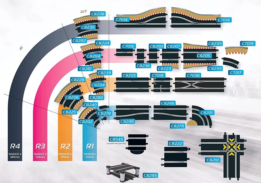 Further Details Title: Scalextric Radius 3 Curve 22.5° x 2 Condition: New Scale: 1:32 scale Item Height: 16mm Item Width: 220mm Item Weight: 289g Item Length: 359mm Material: Plastic Brand: Scalextric MPN: C8204 Type: Race Tracks Age Level: + 5 Years Description: Contents: Radius 3 Curve 22. 5 degree x 2. Push-fit Scalextric track for quick and easy circuit building. Connect modern Scalextric track to original track (which has ring-shaped connectors) using the C8222 Converter Straight. Shown with: C8281 Radius 3 Inner Borders 22. 5° and C8224 Radius 3 Curve Outer Borders 22. 5° (not included). Item Type: Track Analogue compatible: yes Digital compatible: yes Extend,customise and grow your current set up Genuine Scalextric accessory Missing Information? Please contact us if any details are missing and where possible we will add the information to our listing.