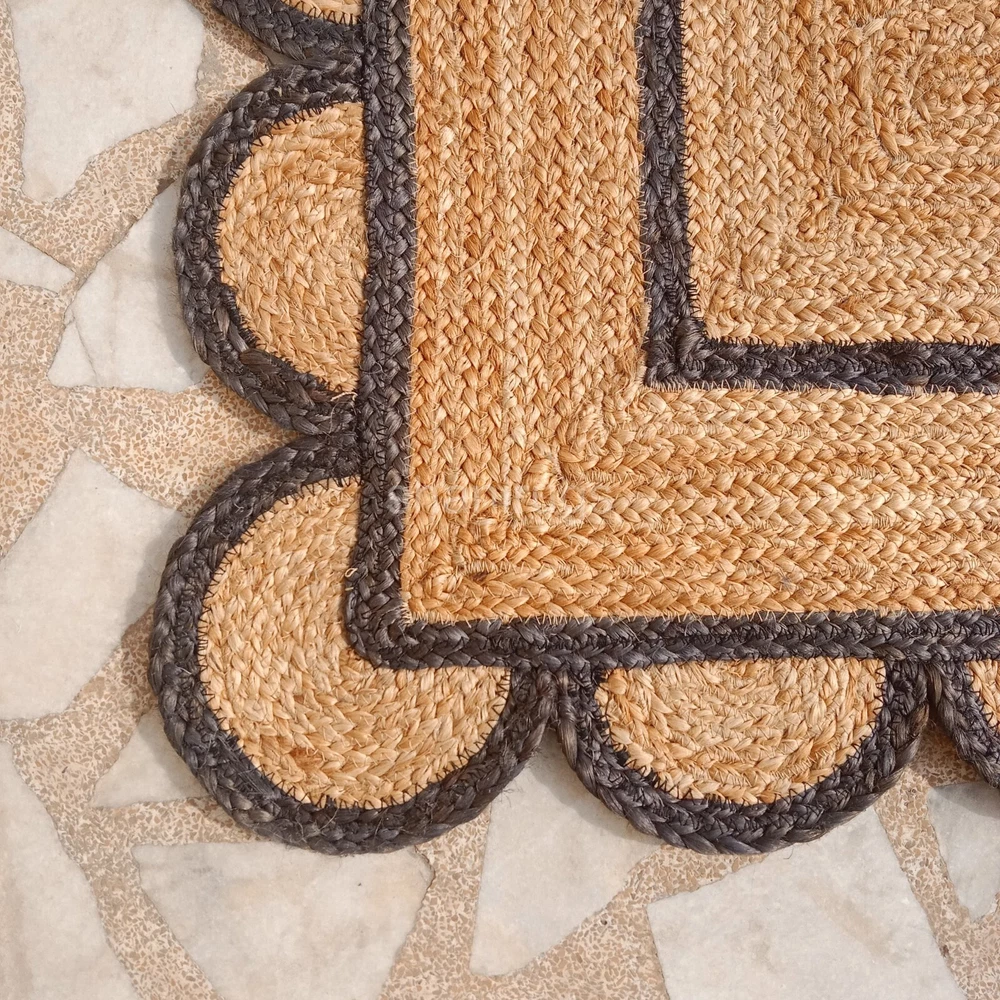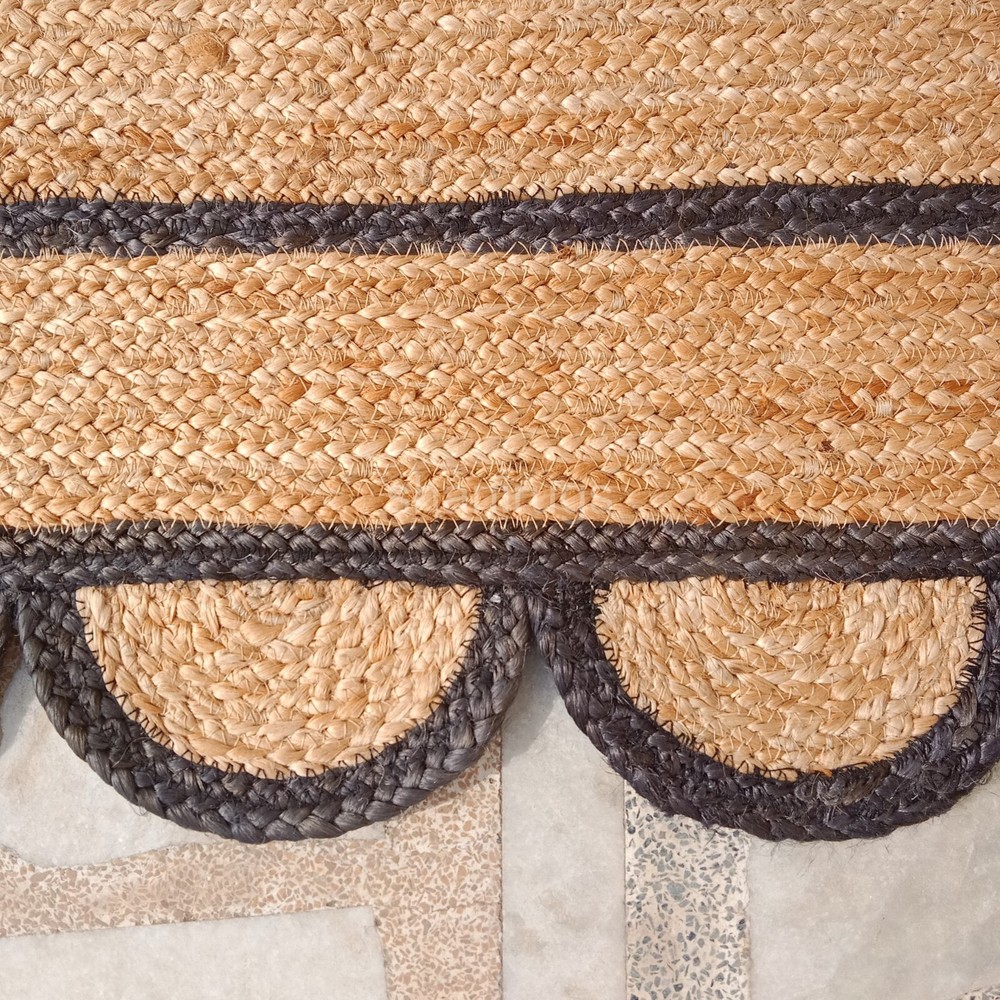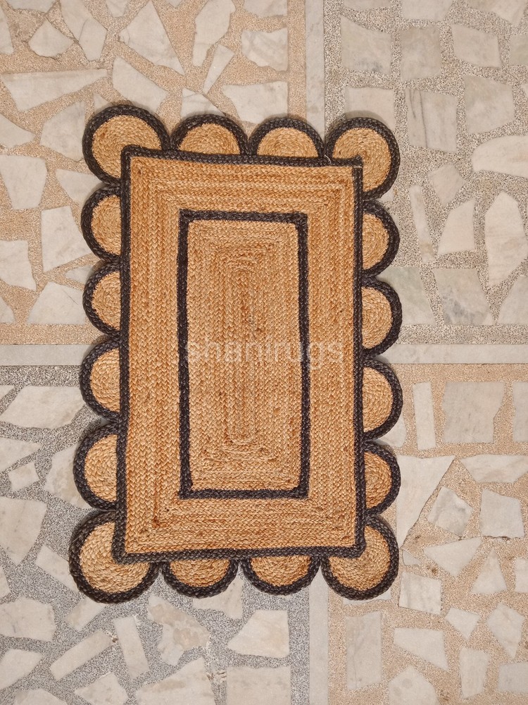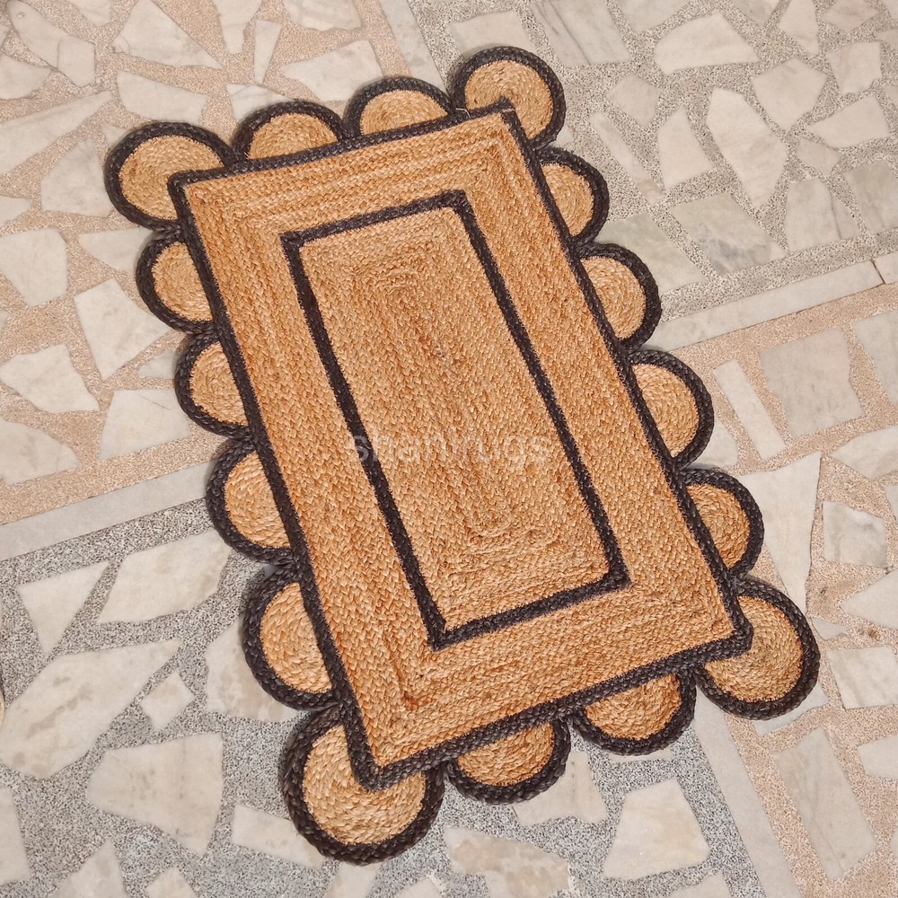Scalloped Natural Jute Rug Braided Jute mat | Kitchen Rug Bath mat Scallop Edge