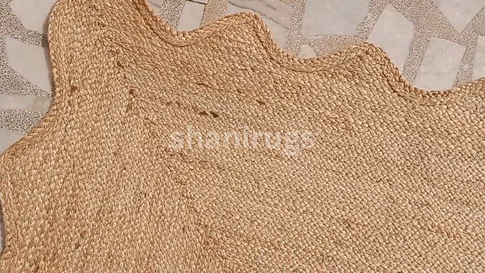 Scalloped Natural Jute Rug Braided Jute mat | Kitchen Rug Bath mat Wave Edge