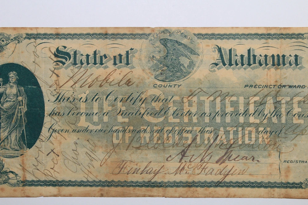Scarce 1902 Historical Document: STATE OF ALABAMA Elector Certificate (#00009) Scarce 1902 Historical Document: STATE OF ALABAMA Elector Certificate (#00009) This Note: Scarce 1902 Historical Document: STATE OF ALABAMA Elector Certificate (#00009) Grades: Very Good / Writing on obverse / reverse Year/Series:1902 Please read our Shipping Terms & Payment Terms prior to making a purchase. We appreciate your business! Once you receive your item, if you feel that the item did not meet your expectations, PLEASE contact us right away. We want you to continue to be our customer, and we always strive for 5 Star ratings. Please see pictures for visual detail and if you have any questions do not hesitate to contact us! Don't forget to check out our store for more affordable fine jewelry, flatware, antiques, coins, currency, and misc. collectibles! Thank you for shopping with us! We take pride in our digital pictures and use a professional photography set up that includes natural flood lighting and neutral back flash strobes. If you need more photos please message us with your request. Grading: If you have questions about the numerical grade of a coin please contact us. EBay will not let us put a numerical grade in the listing but we are always willing to help. We guarantee our grades. ABOUT US: We are a small family business and appreciate each customer that has helped make our business a success! We are looking for long term customers so please contact us if you have ANY issues with your item. We only ask that you give us a chance to provide you with excellent customer service. In many cases, we get a less than positive feedback from a buyer that never tried to contact us before leaving the feedback. We are only human, mistakes happen, please be fair and honest, and we promise to do the same! We will pay your return shipping if we make a mistake with your order. Give us a try today!! SALES / PAYMENT TERMS: ALL STORE ITEMS ARE SUBJECT TO PRIOR SALE! We accept PayPal. RETURN PRIVILEGE: If there is a problem and an item is to be returned, please notify us prior to returning the item. We have a 30-day return policy. All returned items must be shipped back in their original condition within 30 days from the day you originally received the item for a full refund (Minus Sizing Fees on Rings). Items that have been altered or removed from their original packaging are not returnable. Returns are not accepted after 30 days. LISTING ERRORS: We reserve the right to cancel and fully refund an order if we find that there is an error in the listing. COMBINED PAYMENT TERMS: When you are paying online for combined listings, you must make one combined payment for all items. Add items to your cart, or make offers, until all items have been selected and/or all offers have been accepted, and then start the payment process. This will help ensure that all items arrive together, and that you are able to take advantage of any shipping discounts. SHIPPING: DOMESTIC SHIPPING ONLY! We offer FAST Shipping! We do not ship on weekends or on federal holidays. Please keep that in mind if you make a purchase over the weekend. We will promptly ship your item the following Monday (unless that day is a federal holiday). If you would like your shipment expedited please contact us for information. There will be additional fees for expedited shipping. NO INTERNATIONAL SHIPMENTS: We do not ship outside the US. COMBINED S&H DISCOUNT: We are happy to combine shipping on many of our items. Large or high value items may not be eligible for combined shipping. Please wait for us to invoice you before paying for multiple items. Multiple items must be put into the shopping cart, and purchased at checkout together to get your shipping discounts.