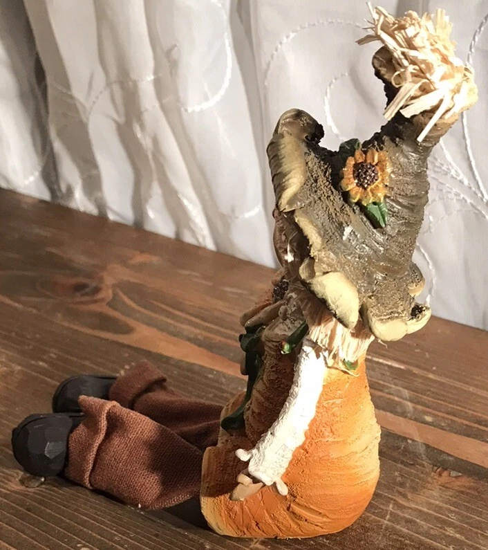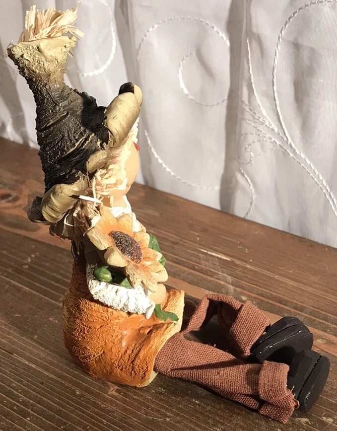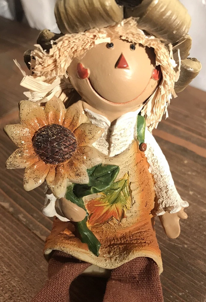 Add a festive touch to your Halloween decor with this Scarecrow Dangle Leg Figurine. Crafted with mixed materials including resin, fabric, and glitter, this multicolor figurine stands at 7-3/4 inches tall and features sunflowers and leaves. Perfect for any Halloween occasion, this figurine will add a holiday vibe to your display. Made in China, this Scarecrow figurine is a great addition to any collection. Measurements approximately: 7-3/4” tall with legs outstretched 5-1/2” tall sitting 2-7/8” wide 4-1/2” deep with legs outstretched 1-7/8” deep without legs outstretched
