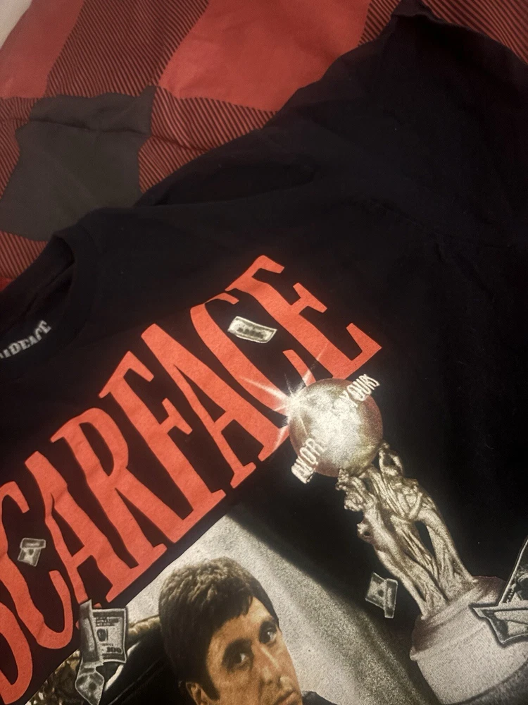 Show off your love for the iconic movie Scarface with this limited edition Al Pacino T-Shirt. The black cotton shirt features a graphic print of the legendary actor and is machine washable for easy care. With a regular fit and short sleeves, this shirt is perfect for any fan of the film. The shirt is available in size medium and is tagless for added comfort. The breathable material ensures that you stay cool and comfortable all day long. This Scarface Al Pacino shirt is a must-have for any movie enthusiast and is sure to make a statement.