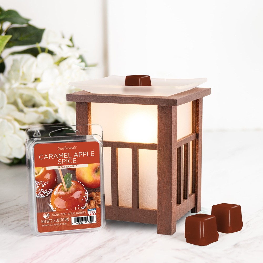 Scentsationals 2.5 oz Caramel Apple Spice Scented Wax Melt features sweet brown sugar and vanilla bean caramel drizzled over cinnamon and clove spiced harvest apples. ScentSationals 2.5 oz Caramel Apple Spice Scented Wax Melts are for use in an electric wax warmer and release a soothing highly fragrant scent into the air immediately upon melting. They are ideal for spreading a relaxing scent and welcoming atmosphere throughout your home. Simply break off a piece and add it to your favorite electric wax warmer. (Wax Warmer Sold Separately) Includes 5 - 2.5 oz pack Replace wax melts when fragrance is gone For use only with wax warmers that conform to UL Std 283