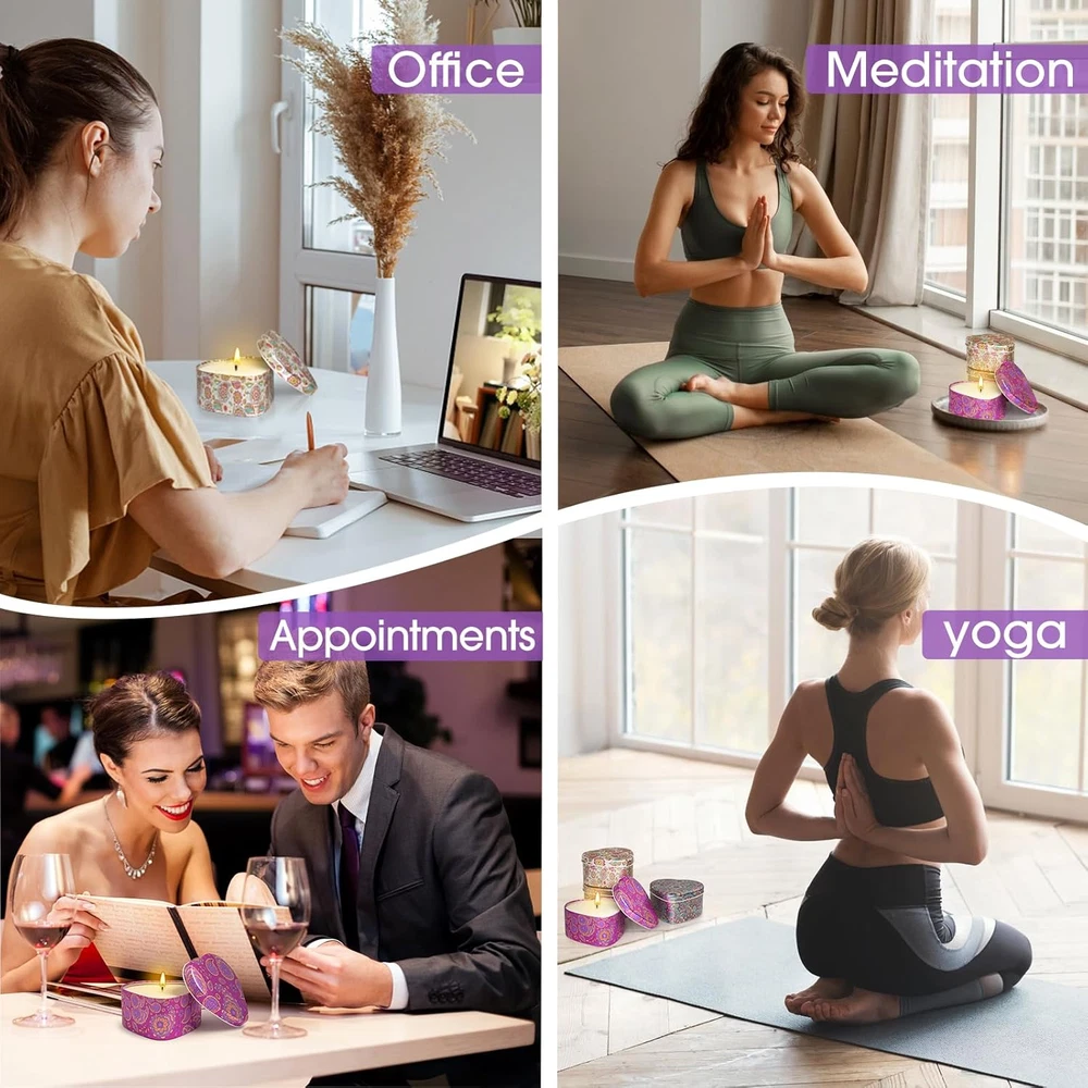 Store New Arrivals Add to Favorite View Feedback Contact Fast deliveries to the customer's home Quality customer service John Make the customers happy! Scented Candles, 4 Pack Candles for Women, Candle Set 4 Different Scents, Natural Ingredients Soy Candles, Candles for Home Scented, Candle Sets for Women Present for Birthday, Christmas Description Exquisite Set: A scented candle set of 4 packs, each scented candle is a different scent: Lavender, Vanilla, Sandalwood and Lemon. Each candle offers a unique fragrance, allowing you to indulge in a variety of delightful scents Adorable Heart-Shaped Tins: These candles are not only a treat for your senses, but also a feast for the eyes. The charming heart-shaped tin design adds a touch of elegance and romance to any room, making them a great addition to your home decor Natural and Safe Ingredients: Crafted with care, these candles are made from natural ingredients that are gentle on both your body and the environment. You can enjoy the soothing aroma without worrying about harmful chemicals or toxins Great Present Choice: Whether it's a birthday, anniversary, or just a simple gesture of appreciation, this candle set makes for an ideal present. Thoughtfully packaged and beautifully presented, it is sure to bring joy and relaxation to your loved ones Warm Tips: The first time you use scented candle, let it burn for a little longer until the top layer of the candle melts to fully engage the fragrance. When using scented candles, extra caution must be taken to ensure safe use. Please keep scented candles away from children and pets, and never leave the burning candles unattended Product Description Plant Wax & Cotton Wick Plant wax not only burns for a longer time, but also releases a purer fragrance, making every use full of natural breath. Smokeless cotton wick not only helps to keep the air fresh, but also reduces the irritation to the respiratory tract. 8% concentration of essence Every fragrance comes from the present of nature, and the proportion of 8% concentration of essence ensures that the fragrance of scented candles is rich and lasting, bringing pure and natural fragrance. Burn Clean Scented candles will not leave residual candles in the glass bottle after being lit. This means that you can enjoy the fragrance without worrying about cleaning up the residue. Whether it's a quiet night or a leisurely weekend, it can provide you with a lasting fragrance experience. Four Different Scents Each scented candle offers a unique fragrance, allowing you to indulge in a variety of delightful scents. Enjoyment Close your eyes and enjoy the fragrance of lavender. Let our scented candles bring you a relaxing experience. Excellent Present Our candle set is beautifully packaged and contains 4 scents, making it a great present for any occasion. After the scented candles are burned, the jar can also be used to grow small plants to add a touch of scenery to your home. Caution • Do not burn candles unattended • Stay away from flammable materials • Place on a heat-resistant surface • Stay away from children and pets • It is best to extinguish and cool down every 2 hours of lighting Item model number MPNWE0005-0P4 Number of Items 4 Package Quantity 4 Color Multicolor Product Dimensions 6.96 x 6.65 x 1.53 inches; 15.68 ounces Material Wax Shape Heart Item Weight 0.98 Pounds Container Material Glass Scent Lavender, Vanilla, Sandalwood, Lemon Specific Uses For Product Relaxation, Home Fragrance, Aromatherapy, Stress Relief Indoor/Outdoor Usage Indoor ABOUT US We offer the best prices around on high quality products. Our E-store includes media such as books, movies, music and games while offering electronics, toys, sporting apparel, clothing, tools, general home, garden items and more. SHIPPING We are always working hard to ensure your package arrives as soon as possible. Please understand that some factors like weather, high postal traffic, and the performance of shipping companies are outside of our control. We offer free shipping to the lower 48 states and ship within 2 business days of payment, usually sooner. We do not accept P.O. Boxes. Please provide a physical address. For shipping outside of the continental USA, we only use eBay's Global Shipping Program. The item is shipped to KY and then sent to the rest of the world. International customers are responsible for all duties and taxes. Continue to 'check out' to calculate costs for shipping the item to your country. Messages regarding eBay's Global Shipping Program MUST be directed at eBay EXCLUSIVELY. RETURNS We offer a 30-Day Return Policy on items in which you are not completely satisfied with. You have the option of a full-refund or an exchange of the item. No returns are available on items shipped outside of the USA PAYMENT We accept PayPal. CONTACT US This page content is yet to come Please ad us to your favorite seller and visit again later Thank You CUSTOMER SATISFACTION We try our very best to make sure every customer is completely satisfied. If there's a problem, message us! We're happy to help. WE ACCEPT
