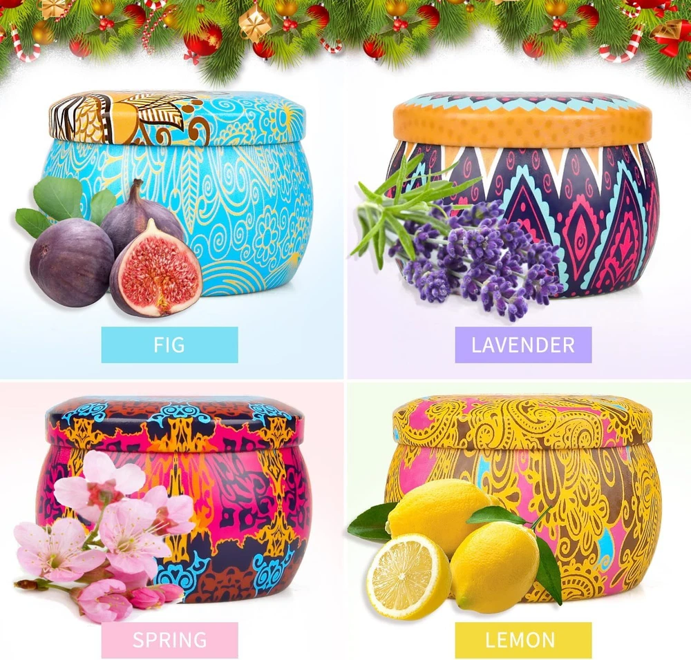 Scented Candles Gifts Set for Women, 4 Pack 4 Classic, Classical Product Details Brand: YINUO LIGHT Color: Classical Product Dimensions: 6.8"W x 6.8"H Item Weight: 4.4 Ounces Number of Items: 4 Scent: lavender, lemon, Mediterranean fig, fresh spring aloha orchid Are Batteries Included: No Indoor/Outdoor Usage: Outdoor, Indoor Specific Uses For Product: Aromatherapy,Home Scented,Scented Shape: cylinder Material: Soy Wax Container Material: tinplate Occasion: Valentine's Day Seasons: All Season Special Feature: scented, non_toxic Style: Classic & Natural Wick Quantity: 1 Model Name: 11 Theme: Holiday Package Information: Can Product Care Instructions: 11 Unit Count: 17.6 Ounce Material Feature: Natural Candle Type: Container Candle Size: 4 Pack Classic Manufacturer: YINUO LIGHT Part Number: 1 Item Weight: 4.4 ounces Country of Origin: USA Item model number: 1 Batteries: 1 AA batteries required. Is Discontinued By Manufacturer: Yes Area Lighting Classification: 11 Included Components: Yes Special Features: scented, non_toxic Batteries Included?: No Batteries Required?: No Is Discontinued By Manufacturer : Yes Item model number : 1 Batteries : 1 AA batteries required. Manufacturer : YINUO LIGHT Country of Origin : USA Brand: YINUO LIGHT Color: Classical Product Dimensions: 6.8"W x 6.8"H Item Weight: 4.4 Ounces Number of Items: 4 Scent: lavender, lemon, Mediterranean fig, fresh spring aloha orchid Are Batteries Included: No Indoor/Outdoor Usage: Outdoor, Indoor Specific Uses For Product: Aromatherapy,Home Scented,Scented Shape: cylinder Candle-Set: The scented candles gift set includes 4 packs of different scents: lavender, lemon, Mediterranean fig, and fresh spring aloha orchid scents. Each scented candle gives off a peaceful and pleasant scent, lighting candles for home scented wherever you need it, scented-candles can calm the mind after a tiring day! ⛪Scented-Candles: The candles for home scented consist of 92% soy wax and 8% fragrance, which offers a stronger aroma, the wick is made from lead-free cotton, and candles for home scented create lavender scented and lemon-scented, these lavender candles can be used for relieve anxiety, and candles for home scented to create an attractive and relaxing atmosphere! Super Long Scented: 4.4 oz per scented candles can last approximately 30 hours, candles for home scented can be used for 120 hours, and using scented candles during yoga, bathing will bring you into a peaceful meditative state which brings you maximized relaxation to the body, candles for home scented can quickly turn home into a romantic garden! Premium Candle Gift Set: Candles for home scented create different scented space, lighting scented candles let you feel as if you are in nature, candles gifts for women, with your family or friends, enjoy let indulge in the lavender, lemon, Mediterranean fig, and fresh spring aloha orchid scents, lasting fresh candles for home scented creates different scents, candles gifts for women is an enchanting candles for home scented! Candle Gifts for Women: Scented-candles gifts for women with gift box packaging, candles gifts for women, girlfriends, women, moms, wives, sisters, appropriate for any holiday event, candles gifts for Valentine's Day, Mother's Day, Birthday, Anniversary, Thanksgiving Day, Easter, Christmas!