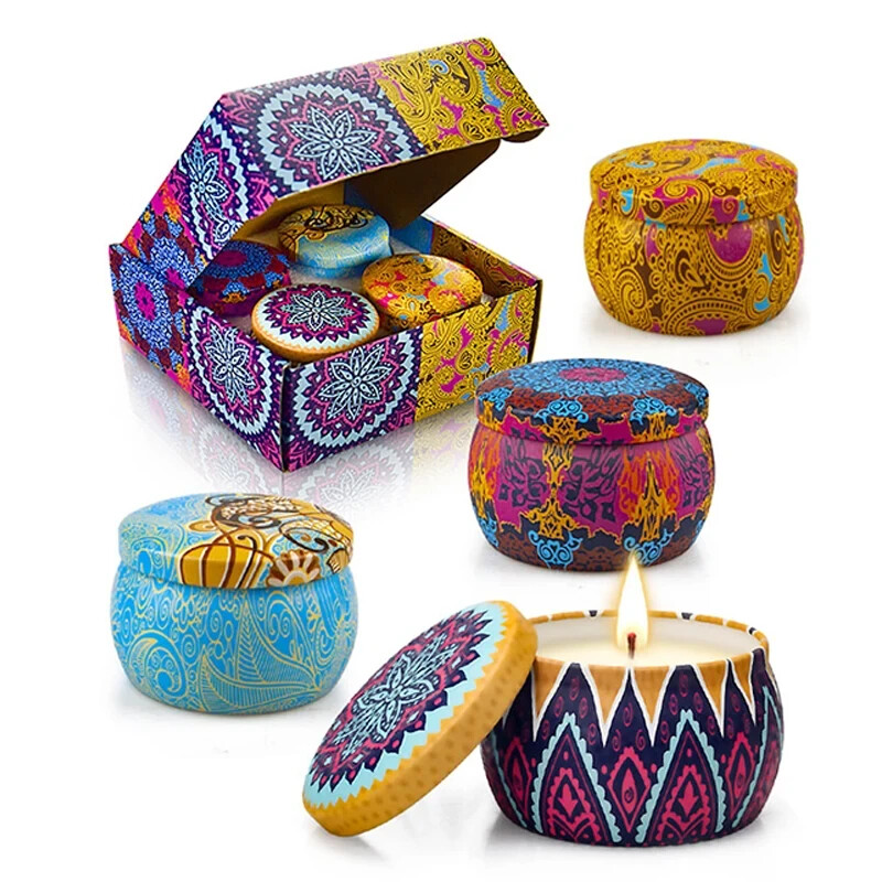 Container Material: Iron Power Source: None Wick Quantity: 1 Brand: Unbranded gtin13: Does Not Apply Number in Pack: 4 Indoor/outdoor Usage: Outdoor, Indoor Handmade: No Item Weight: 4.4 ounces Included Components: Candle Are Batteries Included: No Customized: No Personalize: No Specific Uses For Product: Gift Product Dimensions: 2.9"w X 2"h Embellishment: Glitter Size: Large Number Of Items: 1 Scent: Assorted/Mixed Theme: Scented Candles Gift Set Area Lighting Classification: 11 Features: Glitter, Non-Toxic, Scented, Aromatherapy, Stress Relief, Long Burn Time, Natural, Lead-Free, Cotton Wick Material Type Free: Paraffin Free, Lead Free Unit Count: 17.6 Ounce Shape: Round Package Information: Can Seasons: All Season Number Of Blades: 1 Occasion: Christmas, Birthday Room: Indoor, Outdoor Number Of Lights: 4 Target Audience: Women Material: Soy Wax, Cotton, Iron Color: Multicolor Burning Time: 25-30 hrs Candle Type: Container Candle UPC: Does Not Apply Material Feature: Natural Style: Classic Type: Set