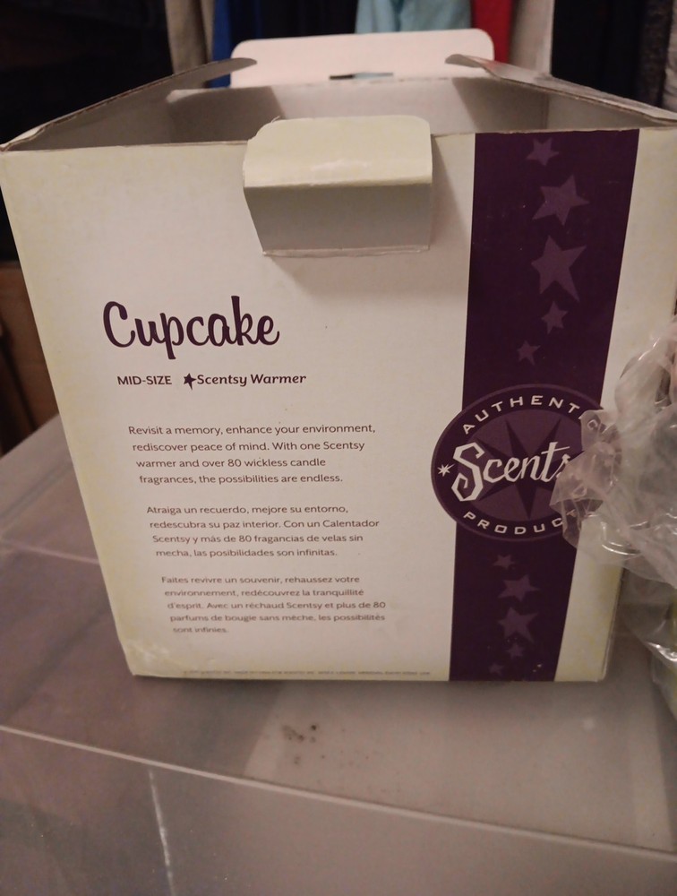 The Scentsy Cupcake Wax Warmer is a retired mid-sized electric oil/wax warmer in a pink and green color with a glossy finish. It features a cupcake design, making it a stylish addition to any living room. This wall plug-in warmer is intended for aromatherapy, using wax as the form of fragrance. With its deodorizer feature and assorted scent options, this Scentsy product is perfect for creating a cozy atmosphere in any home.