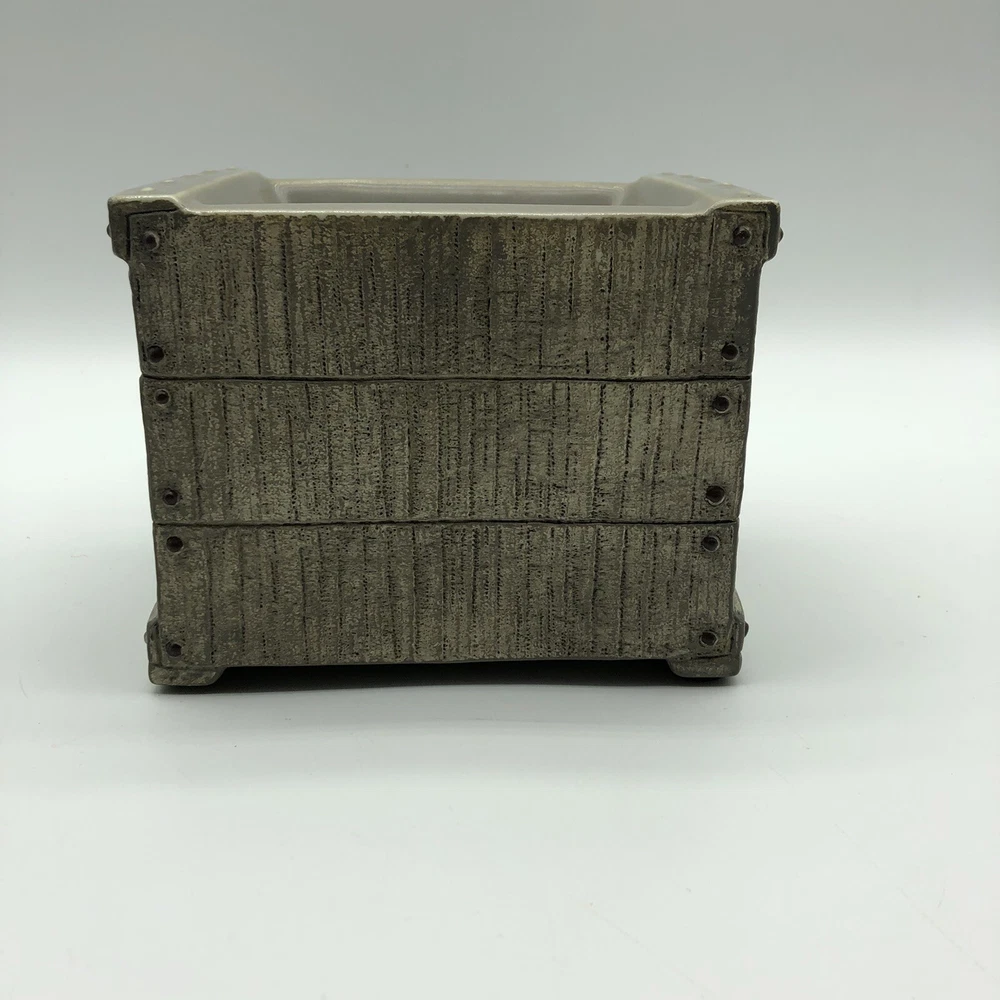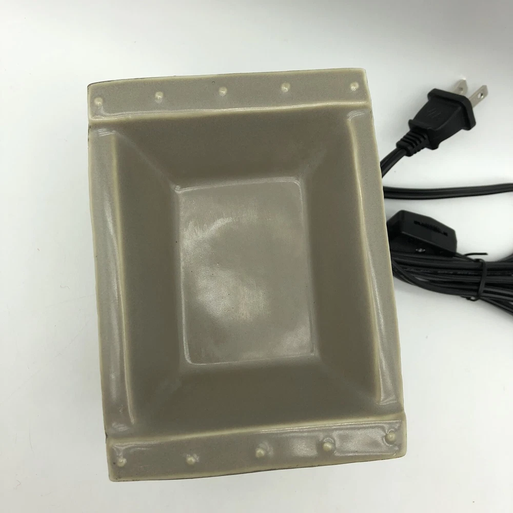 Scentsy Fruit Crate Element Wax Warmer Double Side 3 Rivers Apples Juicy Peaches Scentsy Home Fruit Crate Elemental Wax Warmer Electric Ceramic Gray Box 2 Sides/Ends Peaches Saying: Fresh Homegrown Juicy Peaches Apple Saying: 3 Rivers Apples New in Box Wear No damage, flaws or issues on warmer. Box is not in 100% perfect condition.