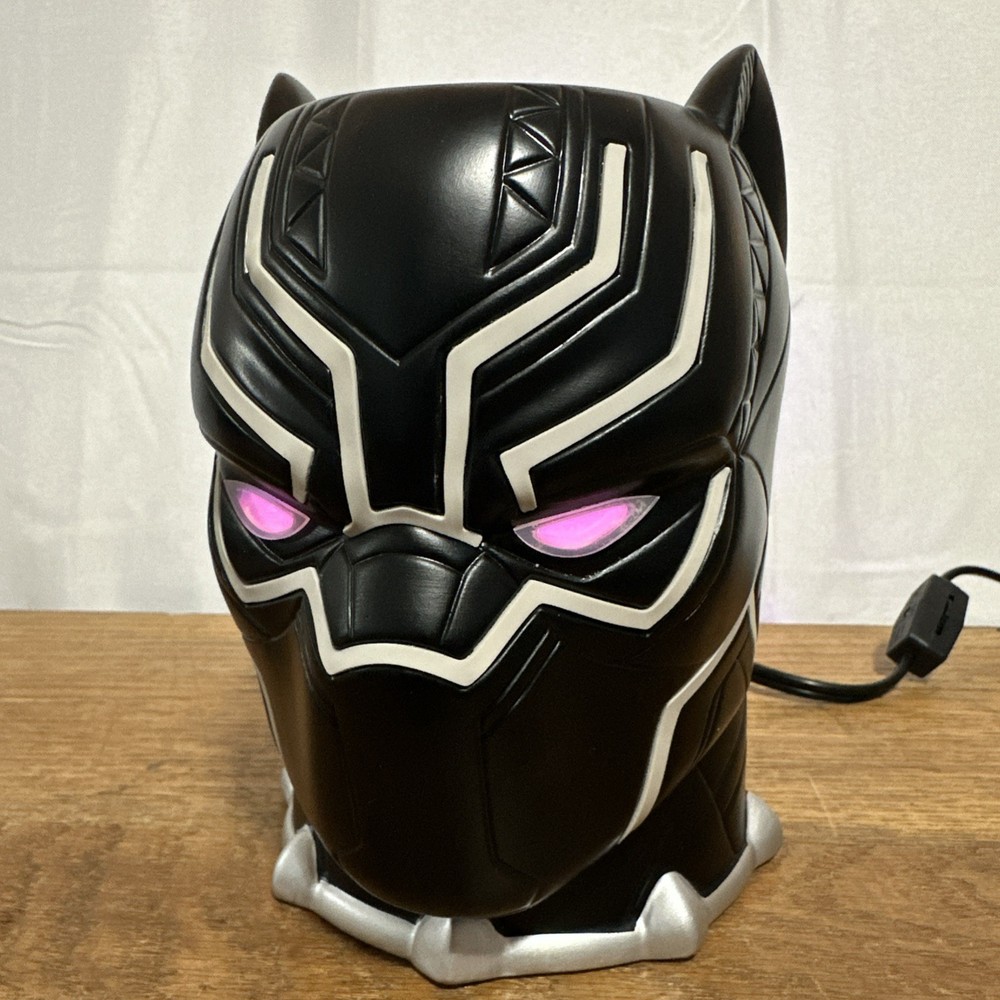 The Scentsy Marvel Black Panther Wax Warmer is a medium-sized container designed for wall plug-in use in any room, with a black color theme suitable for adults. This original Scentsy product features a superhero theme, making it ideal for aromatherapy in the bedroom. It is a deodorizer and odor eliminator that uses wax melts for a fragrant experience. Made in China, this matte-finished wax warmer is from the Scentsy Wax Warmer product line, perfect for adding a pleasant aroma to your home. New open box condition. Has been plugged in to test the light. See photos. Be sure to check out my store for other collectibles and vintage treasures.