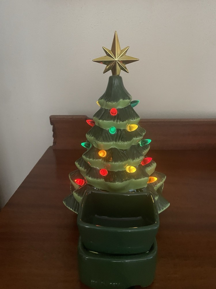 Elevate the festive atmosphere of your home with the Scentsy Merry Little Christmas Tree Wax Warmer. This large, multicolored ceramic container is a perfect addition to your Christmas decor, designed to bring the joy of the season into your space. The wall plug-in feature ensures that you can enjoy your favorite aromas without the hassle of a standalone burner. Crafted to be both a deodorizer and an odor eliminator, this electric oil/wax warmer slowly burns your chosen fragrances, releasing them seamlessly into the room. Measuring at an impressive 9.5 inches in height and 5 inches in width, it's an eye-catching piece that fits comfortably in any room, making it an ideal gift for adults who love to create a cozy, aromatic environment.