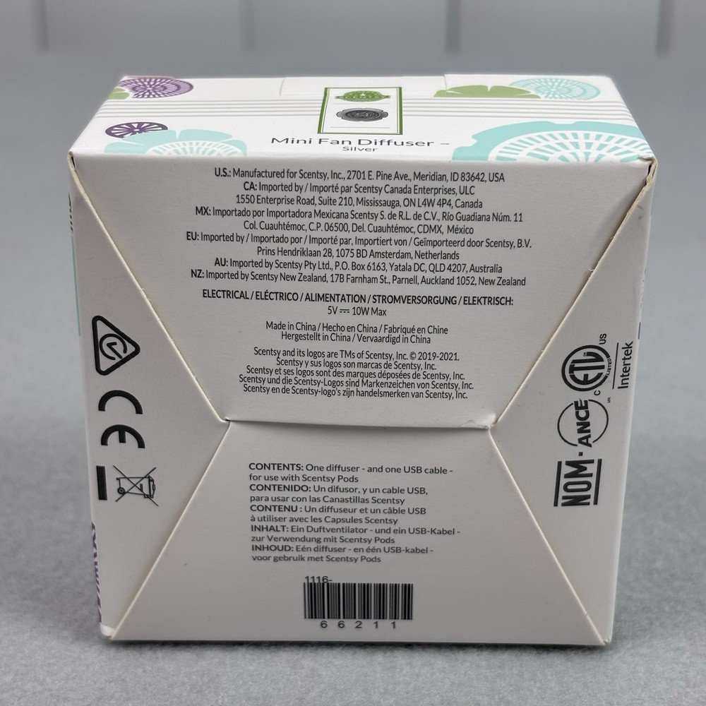 The Scentsy Mini Fan Diffuser is a portable electric diffuser and atomizer designed for adults. This small, sleek gray plastic device is perfect for diffusing your favorite essential oils on the go. With a convenient USB port for plug-in use, this Mini Fan Diffuser from Scentsy is a must-have for anyone looking to enjoy the benefits of aromatherapy wherever they are.