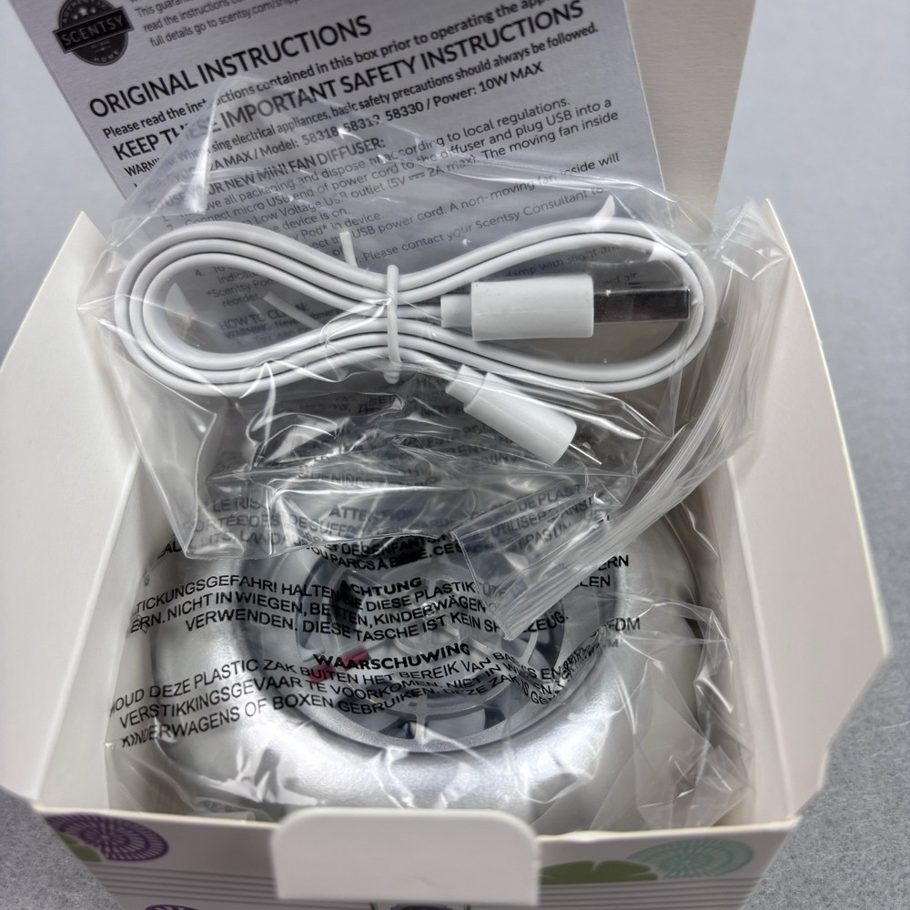 Scentsy Mini Fan Diffuser Silver Portable USB NIB