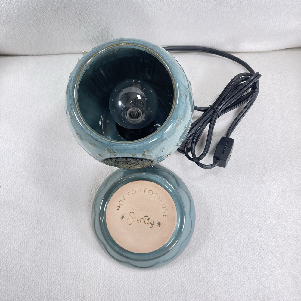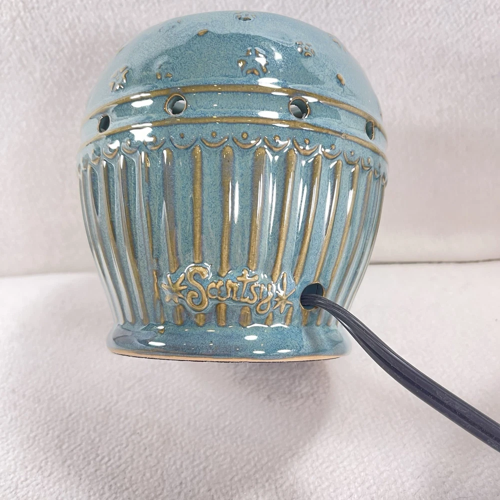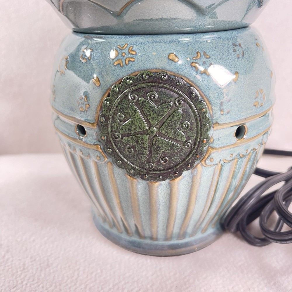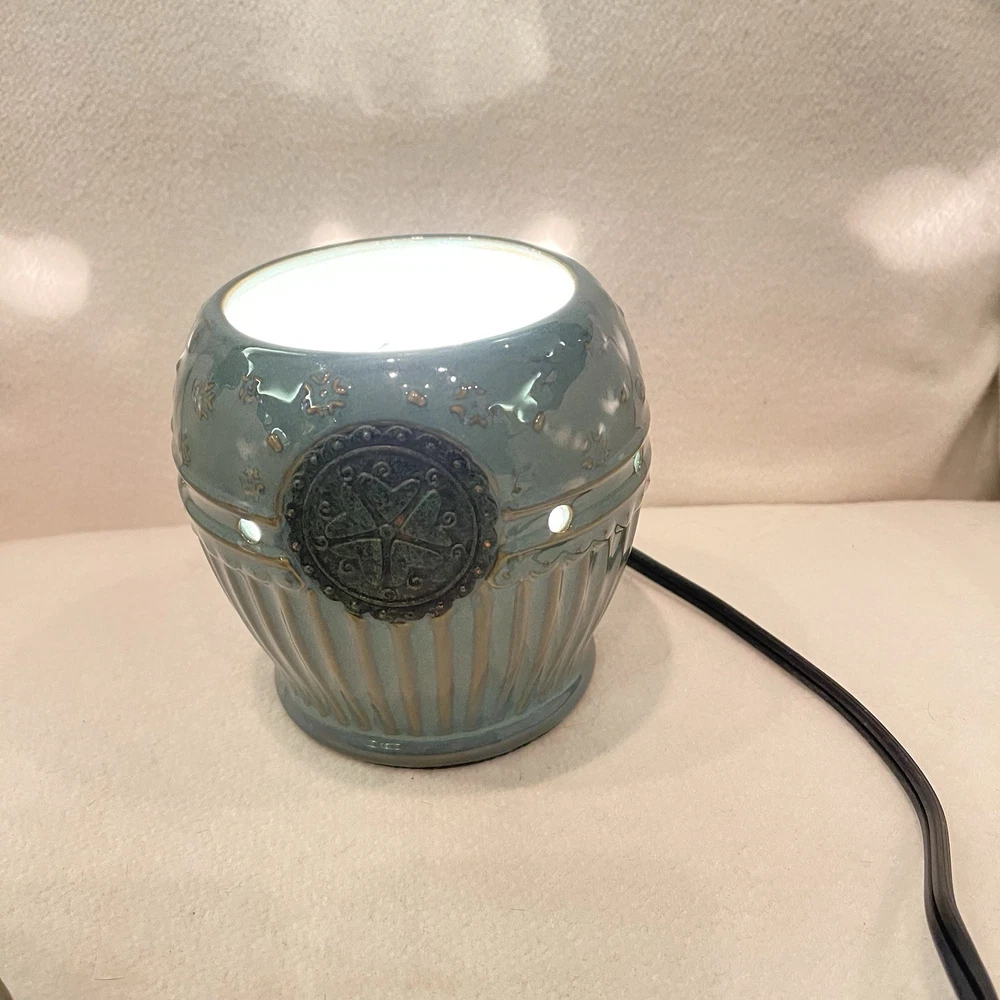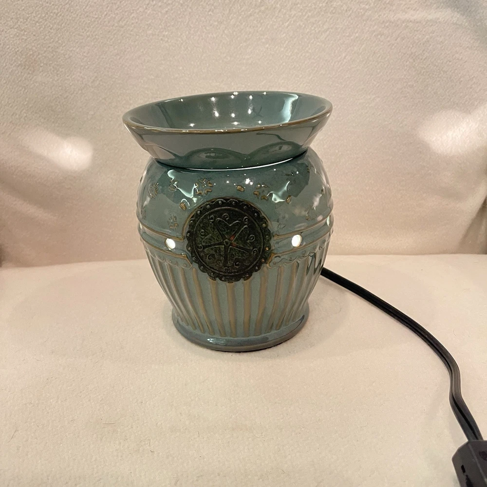 Scentsy VICTORIA Wax Warmer Burner Full Size Teal Blue with Flower Seal RETIRED