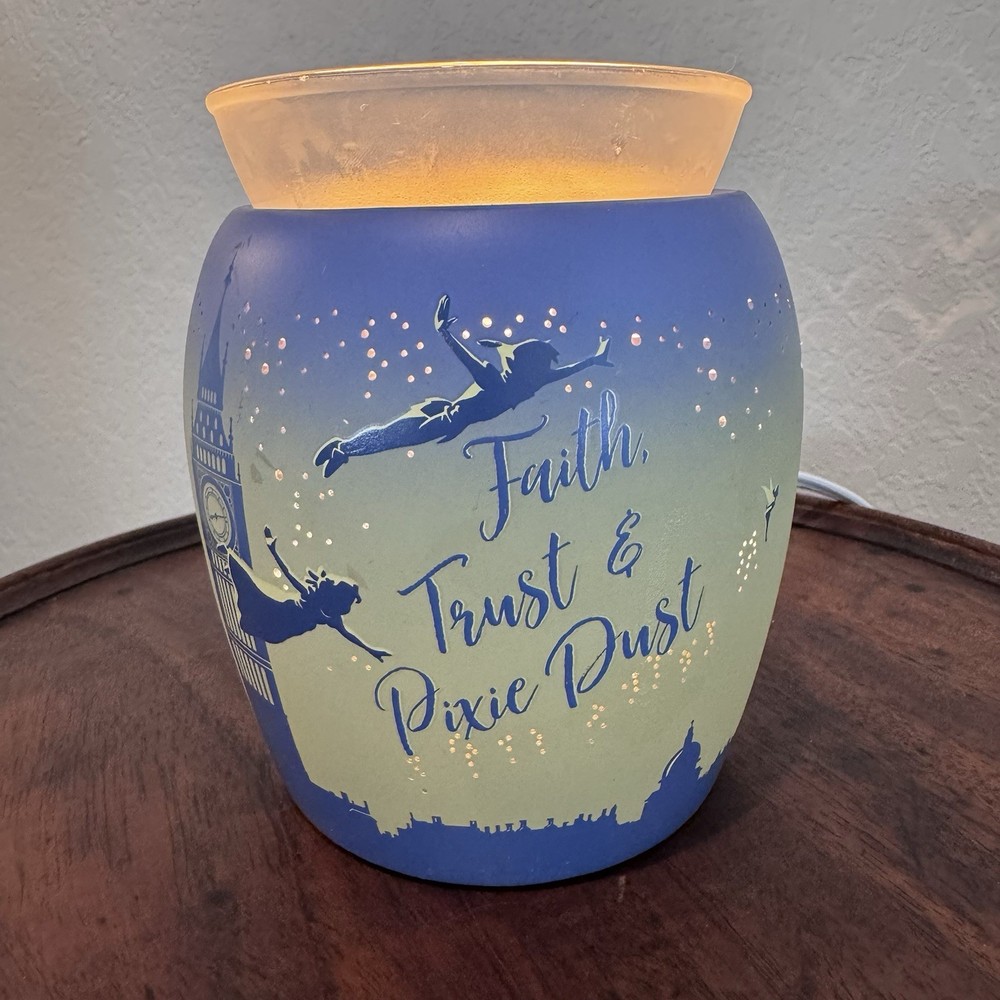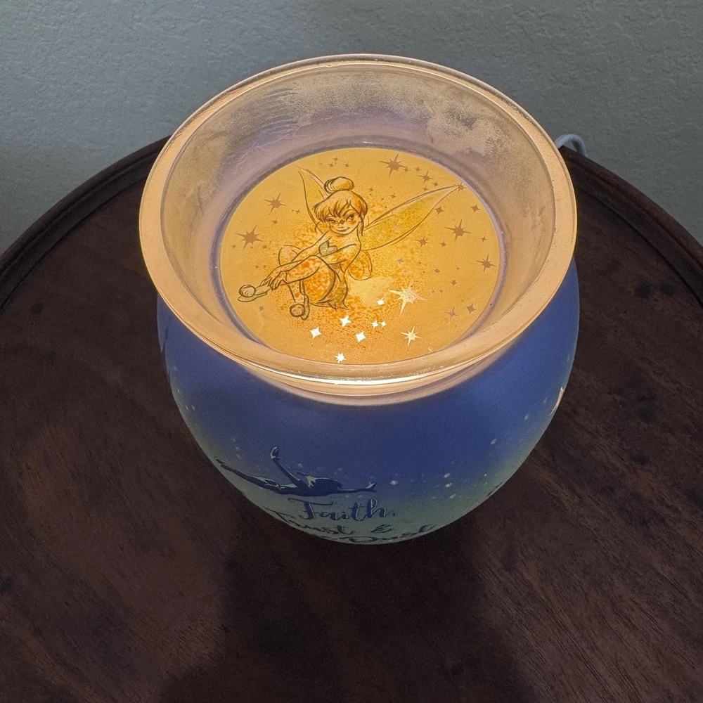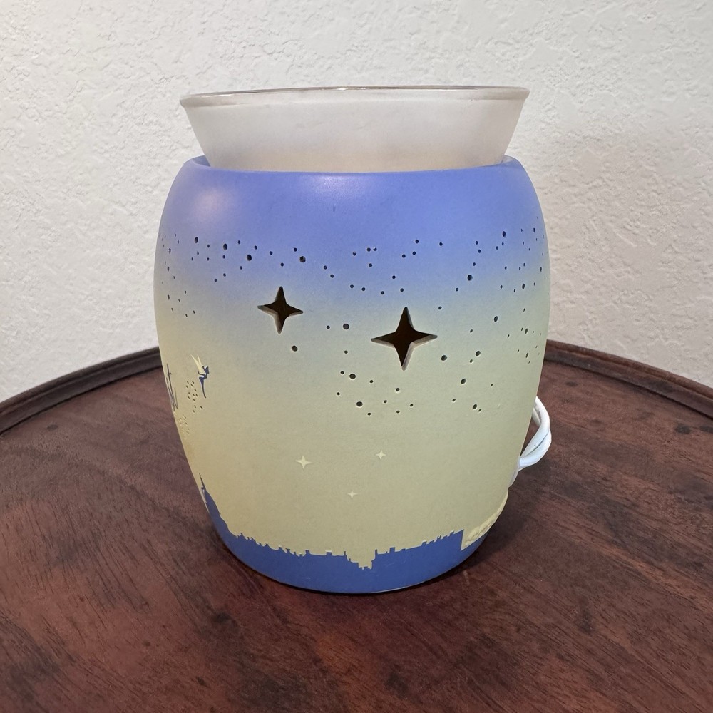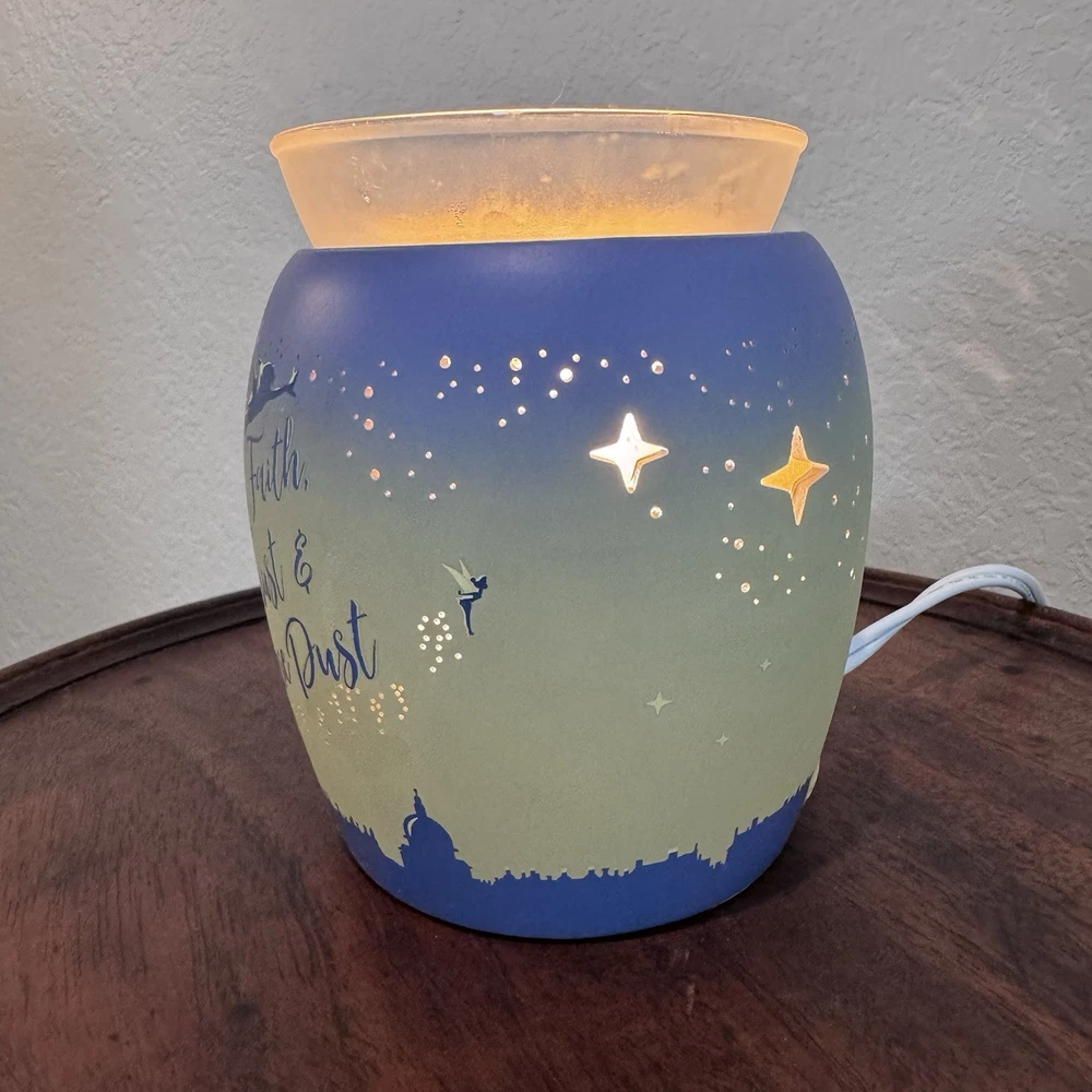 Add a touch of magic to your home with the Scentsy Tinker Bell-Peter Pan Faith Trust Pixie Dust Electric Oil/Wax Warmer. This charming ceramic warmer boasts a whimsical design that captures the essence of the beloved Disney characters, making it a perfect addition to any room or a thoughtful gift for fans of the franchise. The warmer stands at 6 inches tall and is designed to be used with your favorite Scentsy fragrance oils or wax melts to create a delightful aroma that will fill your space. While this item is used and lacks its original packaging, it retains its allure, and the timeless theme of Disney Peter Pan and Tinkerbell is sure to enchant anyone who sees it.